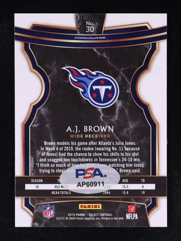 A.J. Brown Signed 2019 Panini Select #30 RC (PSA)