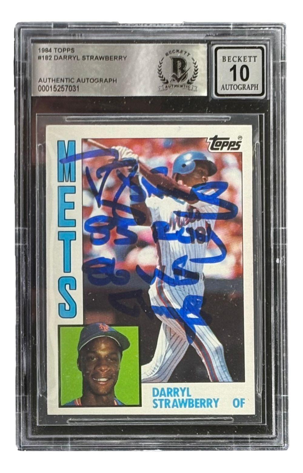 Darryl Strawberry Signed 1984 Topps #182 RC Inscribed "85 ROY" & "86 WS Champs" (BGS | Auto 10)