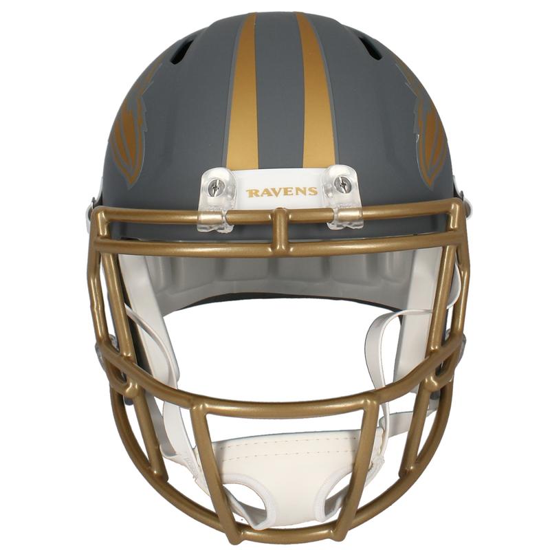 Riddell Baltimore Ravens full-size slate alternate speed replica helmet. Hand-signed by Ray Lewis (HOF).