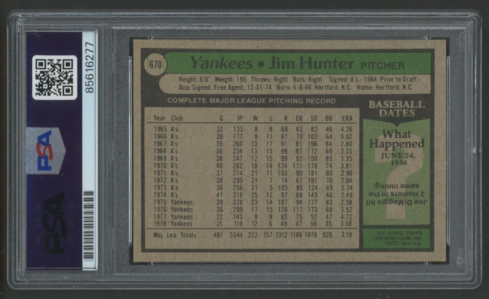 Jim "Catfish" Hunter Signed 1979 Topps #670 (PSA)