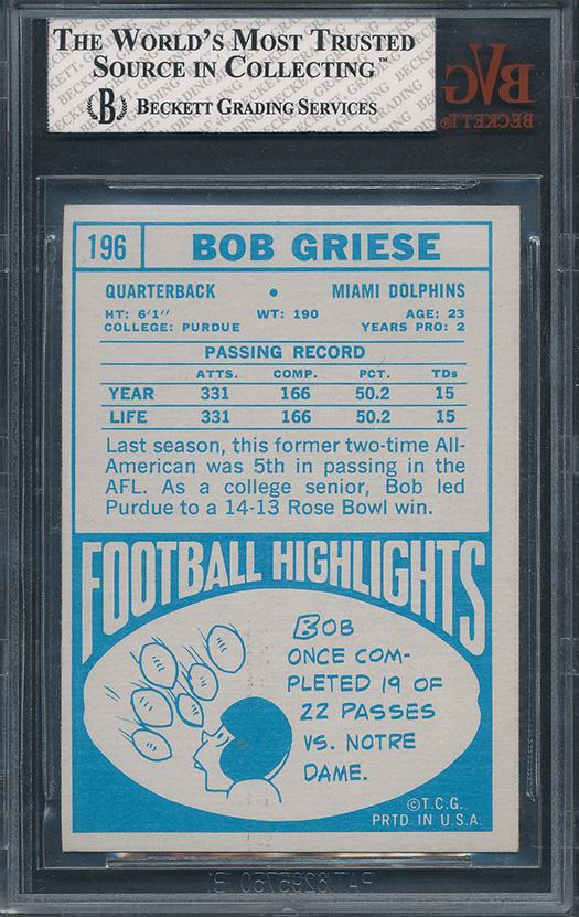 Bob Griese 1968 Topps #196 RC (BVG 8)