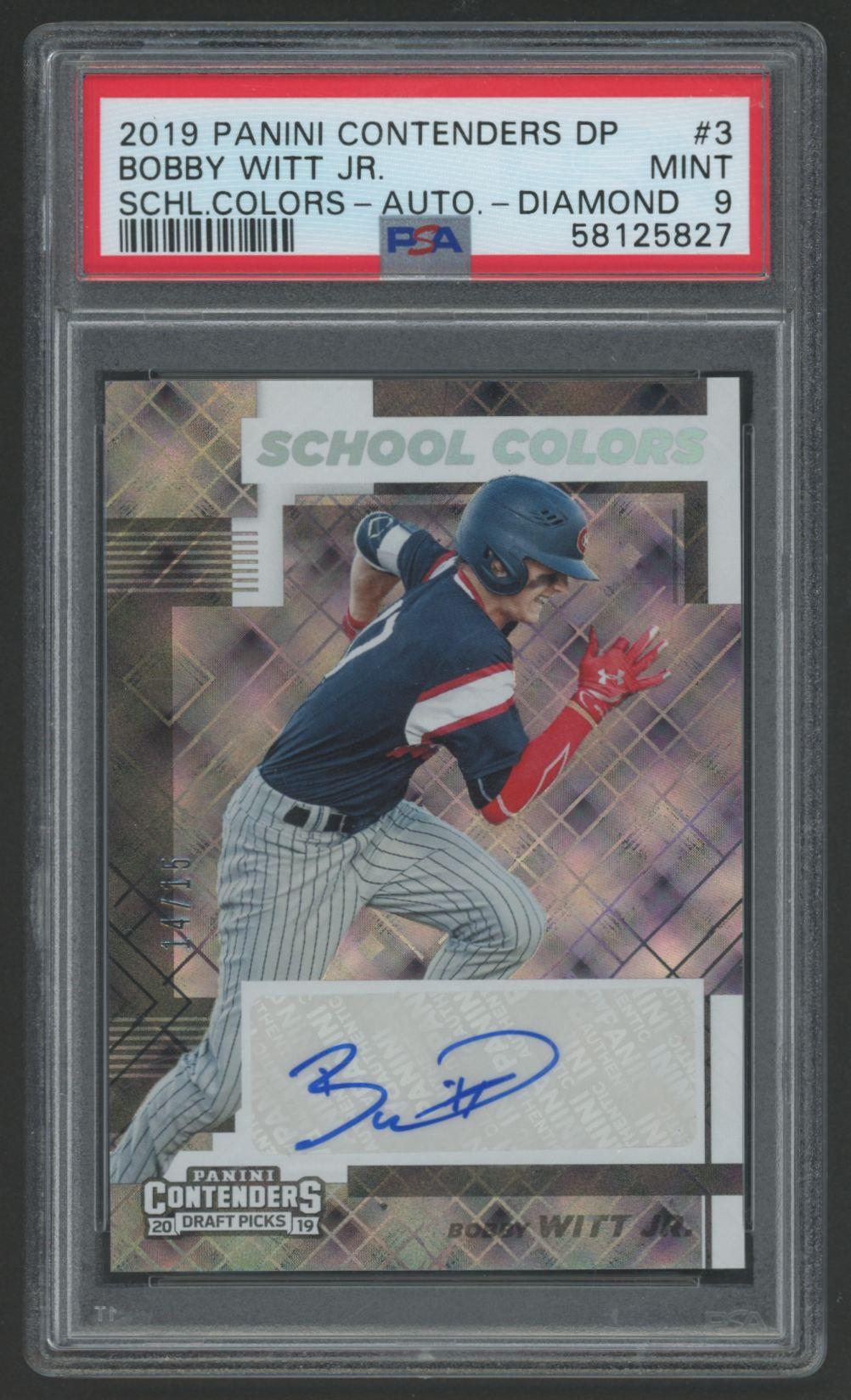 Bobby Witt Jr. 2019 Contenders Draft Picks School Colors Autographs Diamond #3 #14/15 (PSA 9)