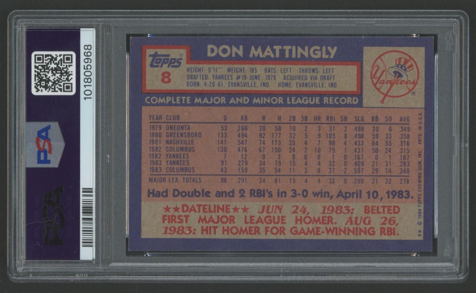 Don Mattingly 1984 Topps #8 RC (PSA 8)