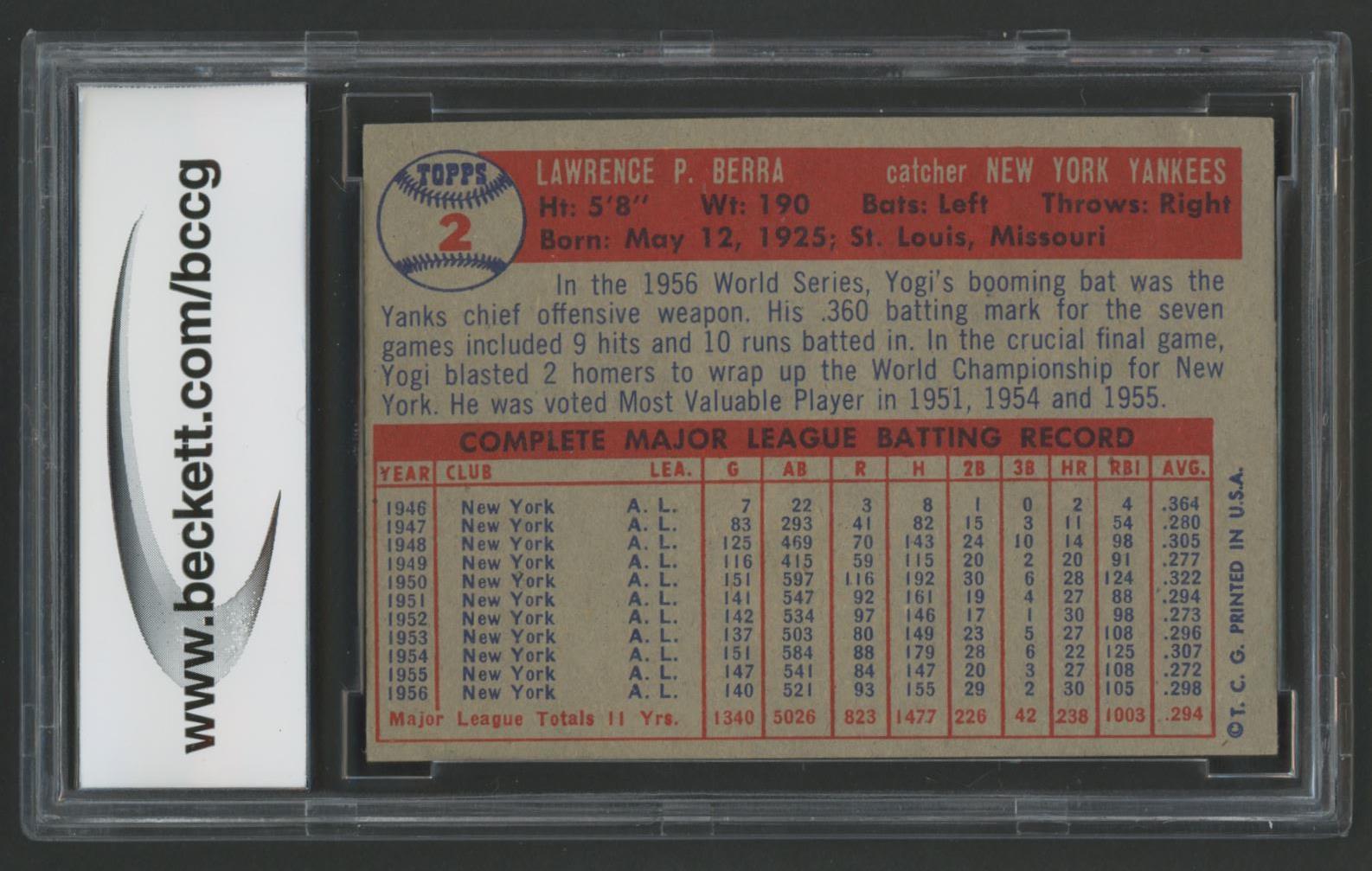 Yogi Berra 1957 Topps #2 (BCCG 9)