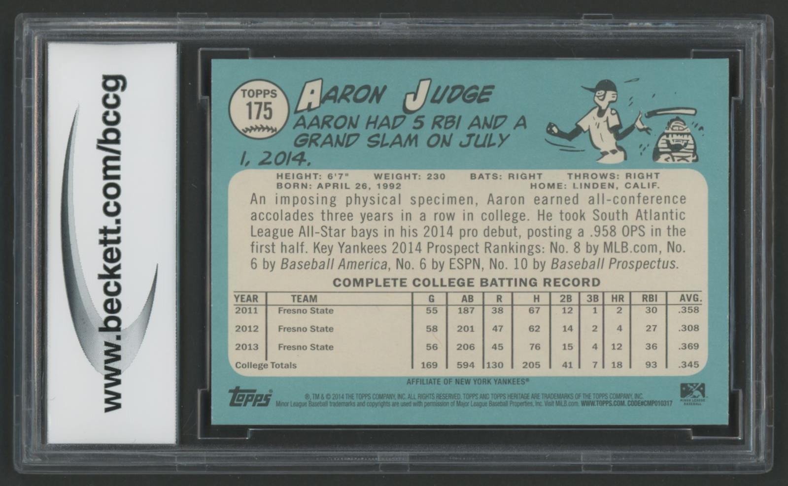 Aaron Judge 2014 Topps Heritage Minors #175 (BCCG 10)