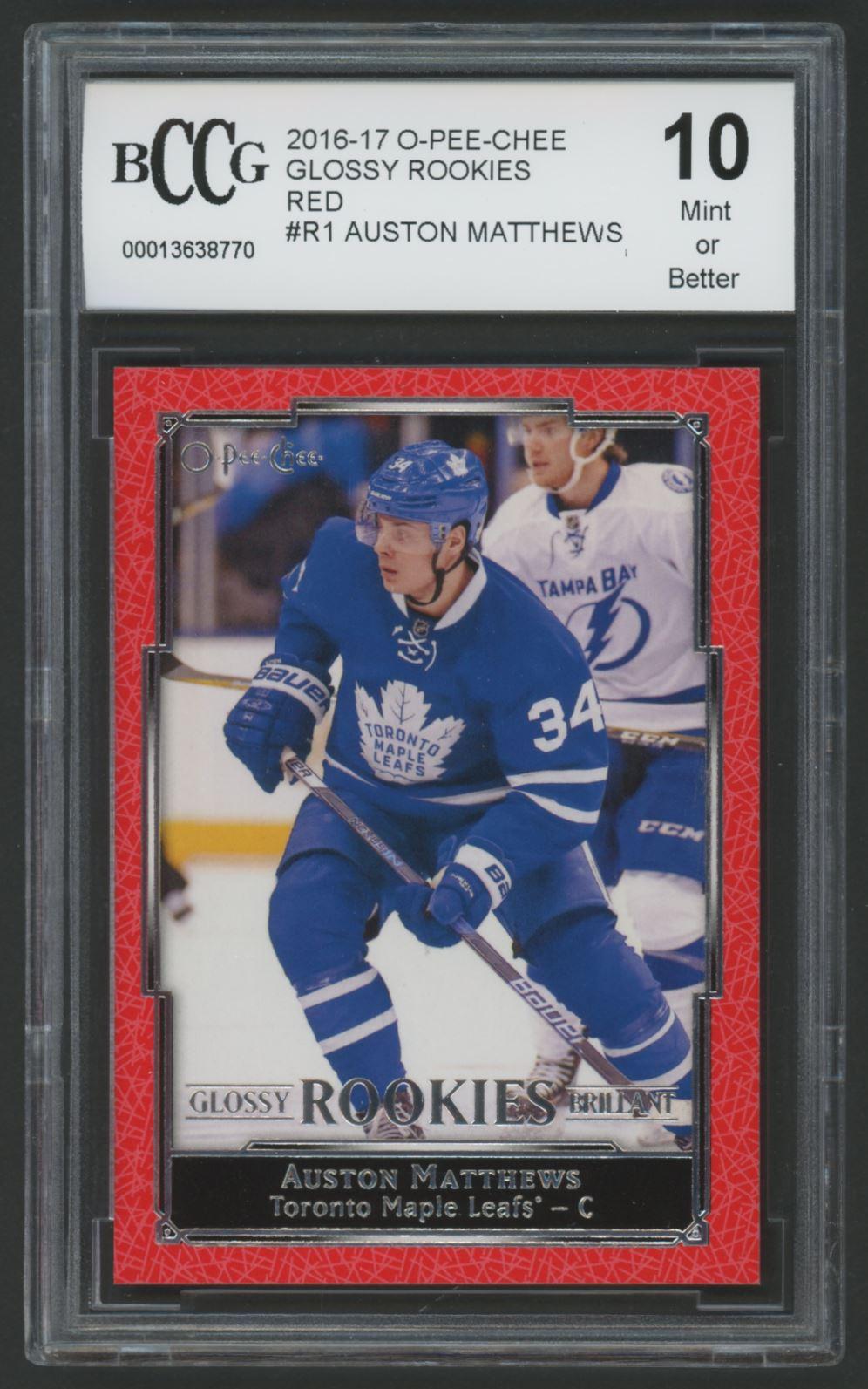 Auston Matthews 2016-17 O-Pee-Chee Glossy Rookies Red #R1 (BCCG 10)