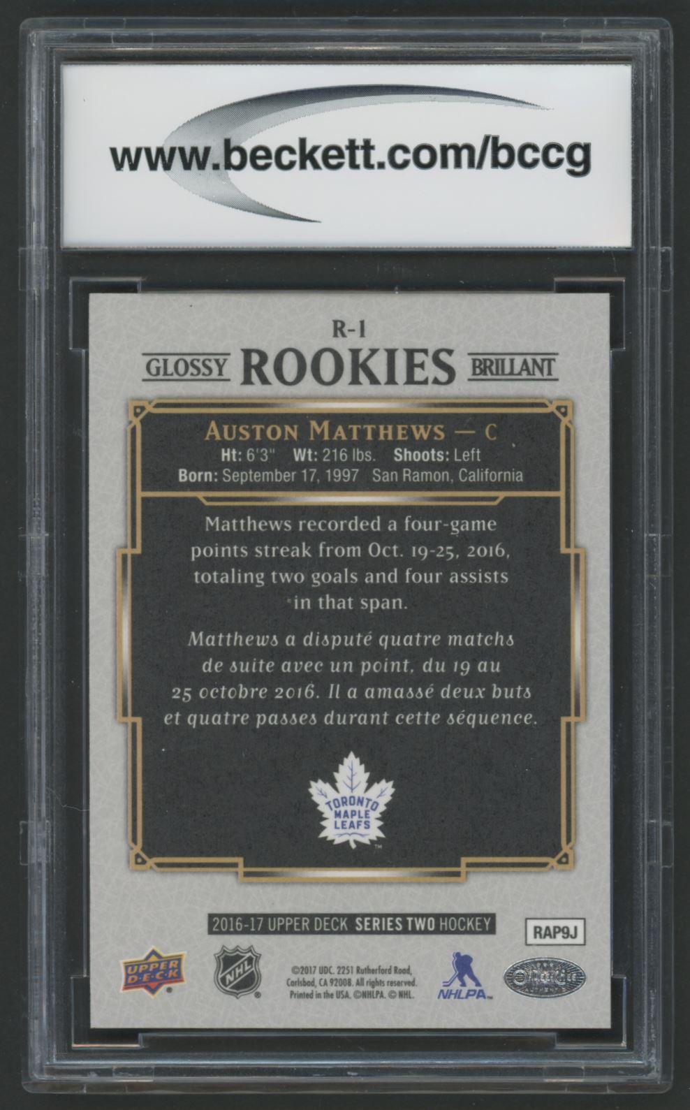 Card has been graded Beckett (BCCG) 10. Please see photos for details regarding the condition of the card (Toronto Maple Leafs).