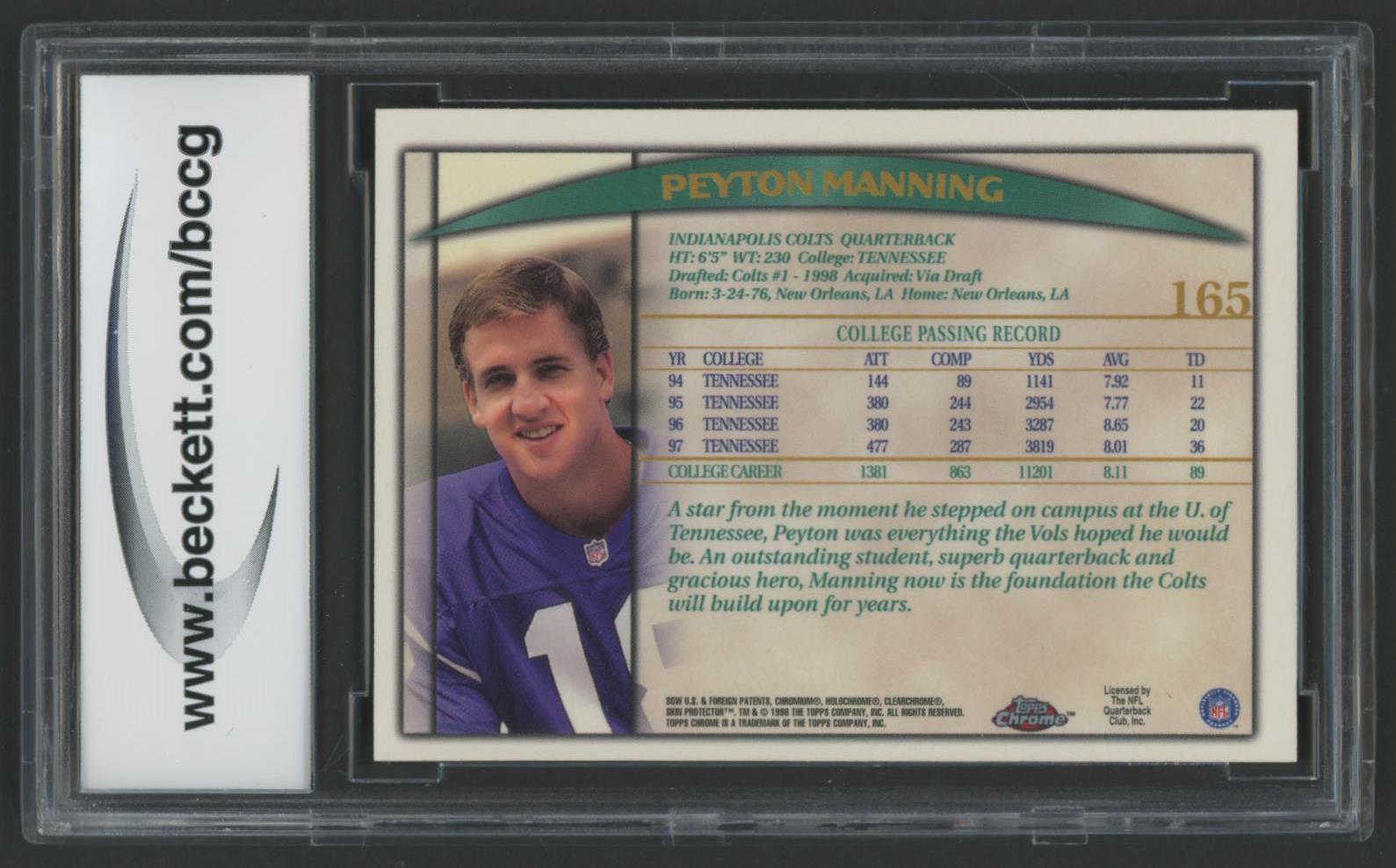 Peyton Manning 1998 Topps Chrome #165 RC (BCCG 10)