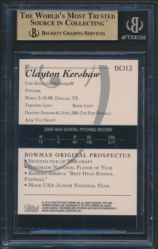 Clayton Kershaw 2006 Bowman Originals Prospects #13 (BGS 9.5)