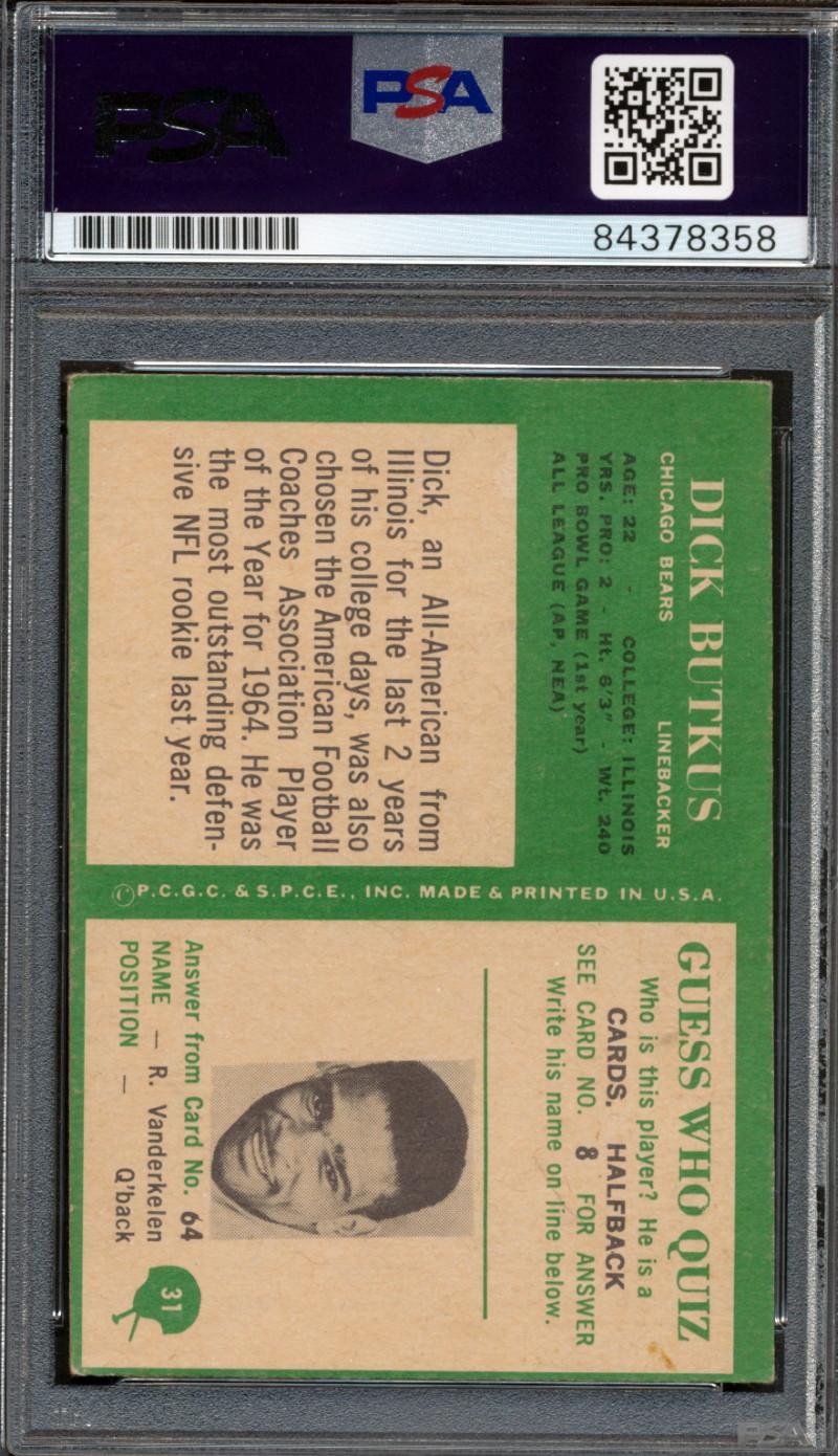 Dick Butkus Signed 1966 Philadelphia #31 RC Inscribed "HOF 79" (PSA)
