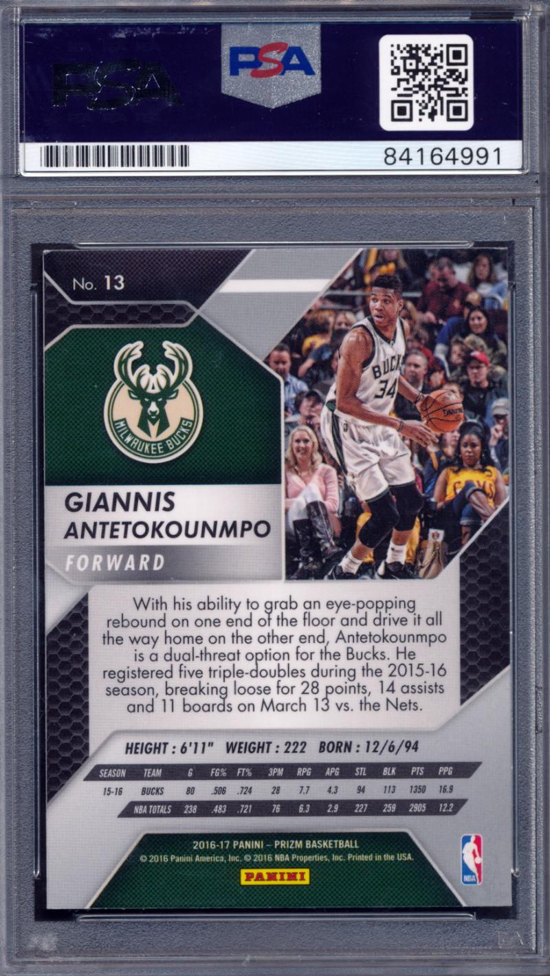 Giannis Antetokounmpo Signed 2016-17 Panini Prizm #13 (PSA)