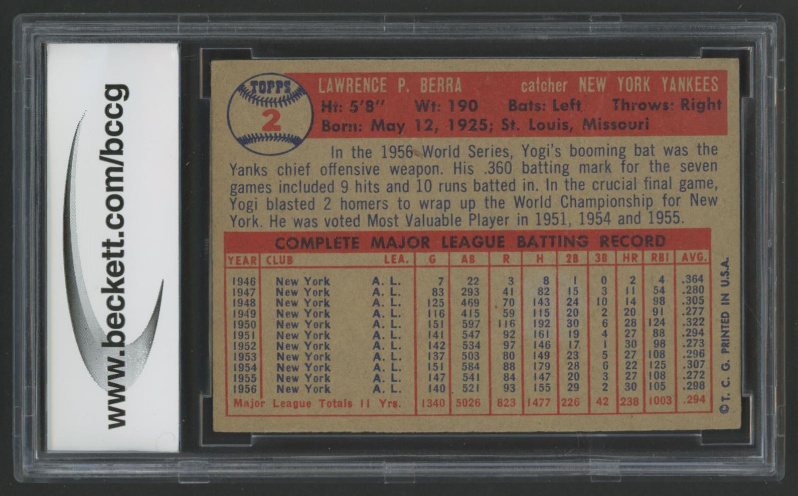 Yogi Berra 1957 Topps #2 (BCCG 8)