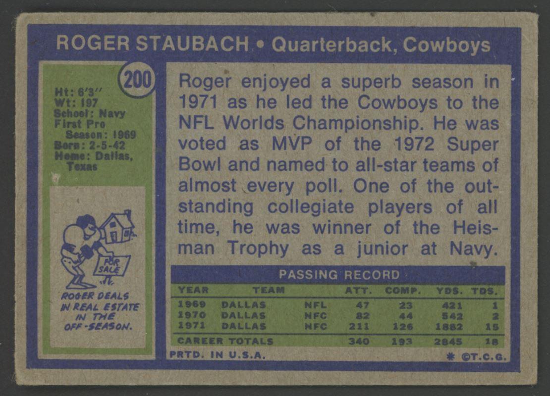 Roger Staubach 1972 Topps #200 RC