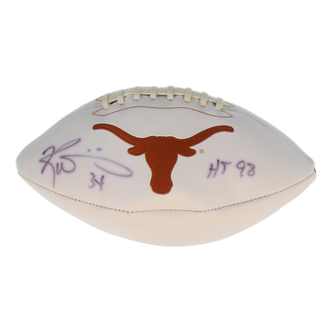 Texas Longhorns logo football has been hand-signed and inscribed by Ricky Williams.