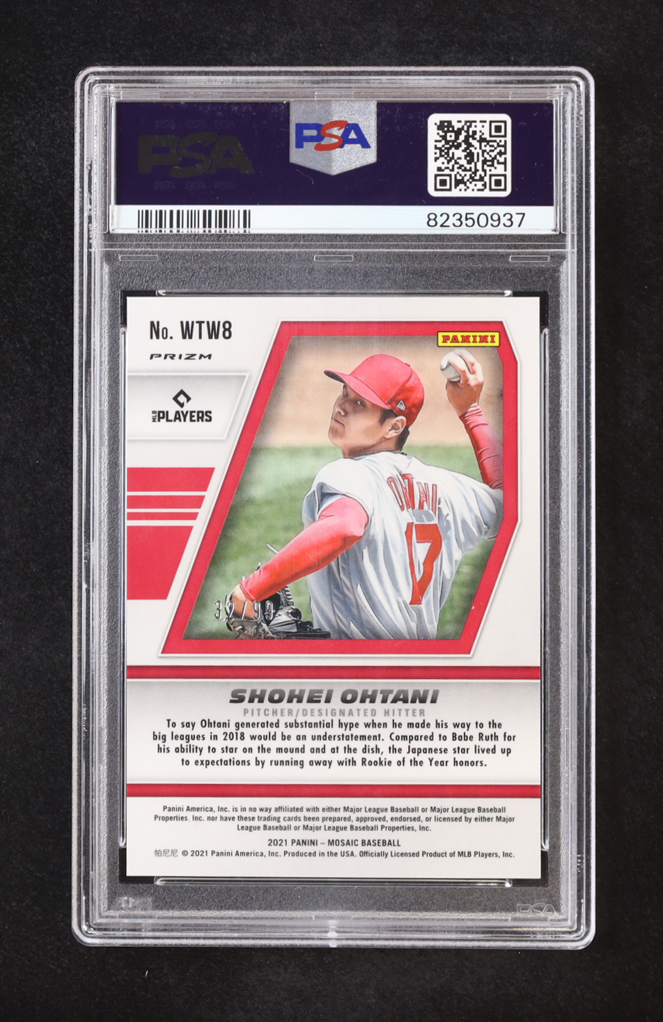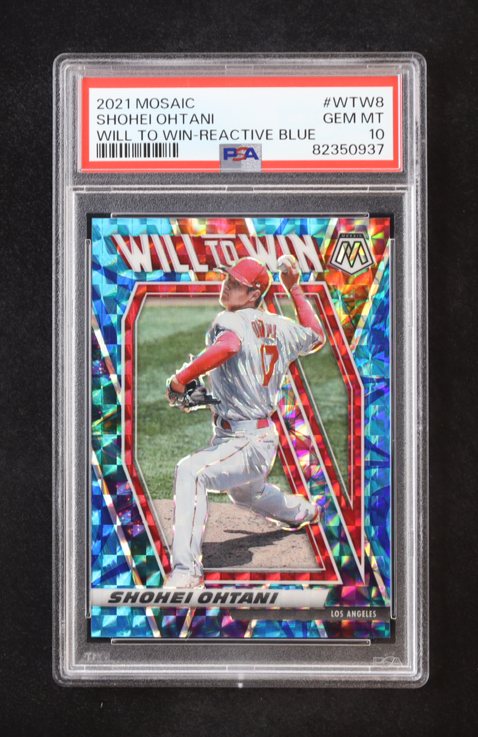 Shohei Ohtani 2021 Panini Mosaic Will to Win Mosaic Reactive Blue #8 #32/99 (PSA 10)
