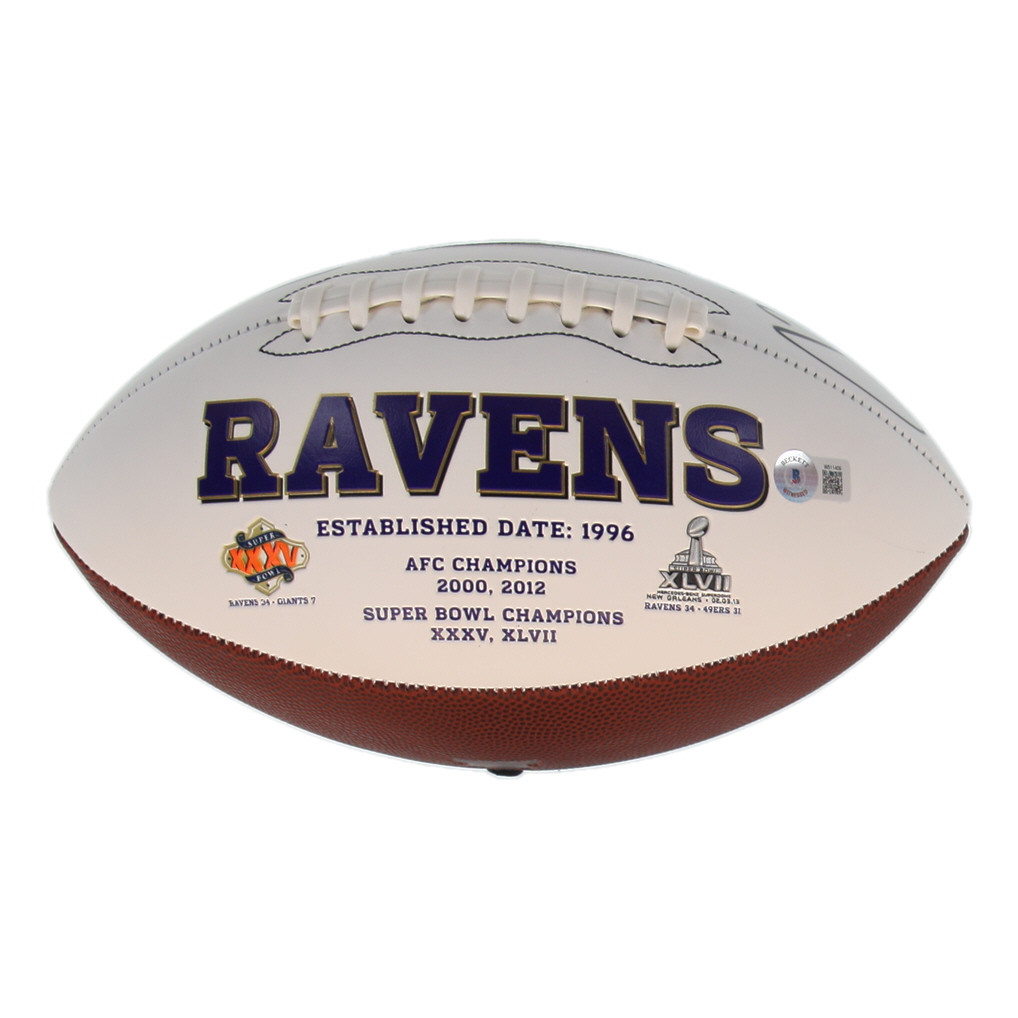 Ray Lewis & Joe Flacco Signed Ravens Logo Football (Beckett)