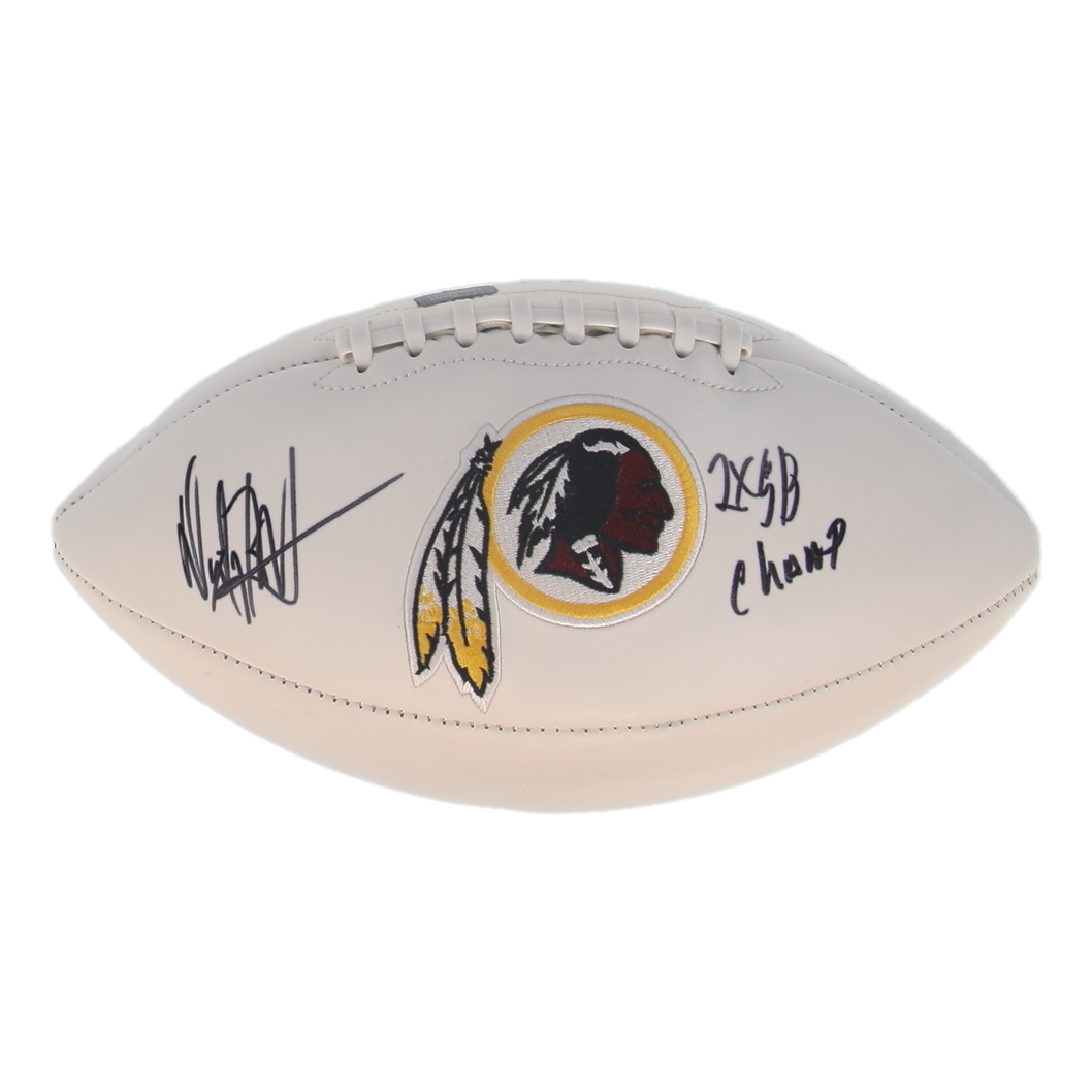Washington Redskins logo football has been hand-signed and inscribed by Dexter Manley.