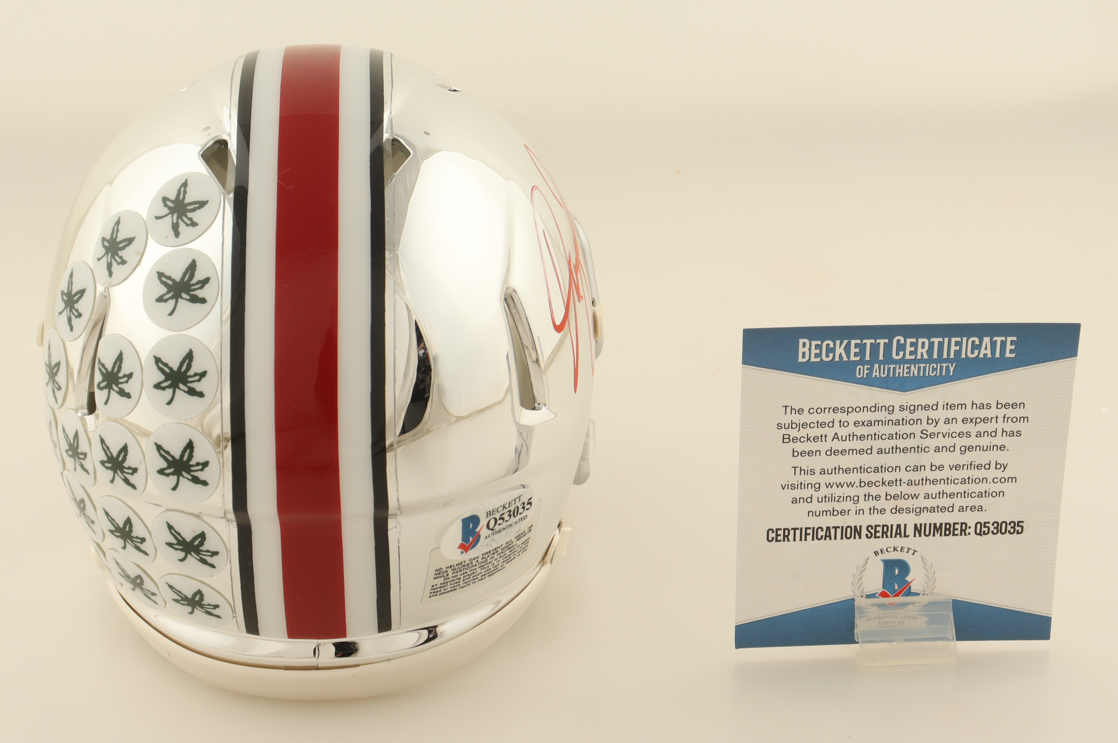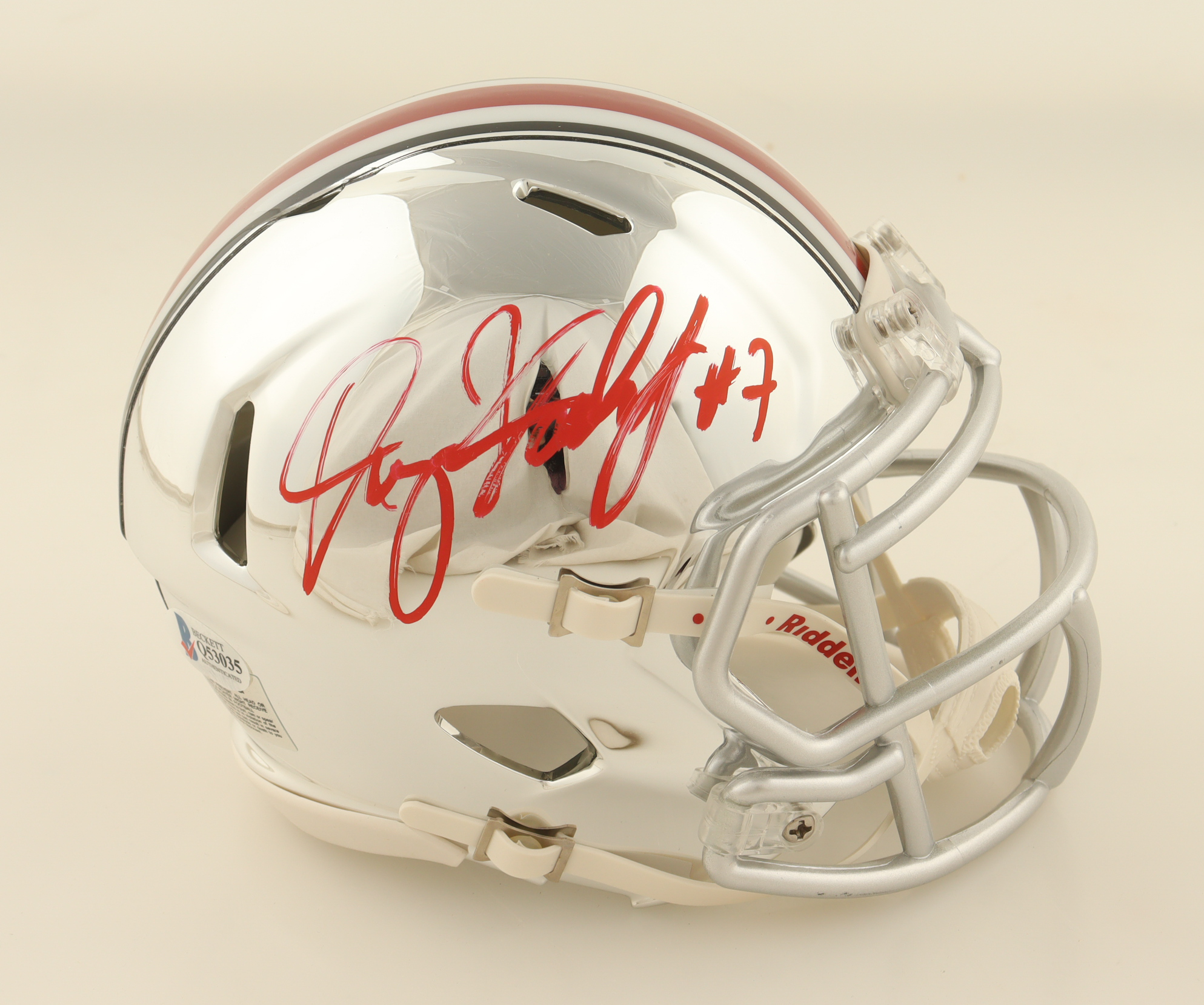 Riddell Ohio State Buckeyes chrome speed mini helmet has been hand-signed by Dwayne Haskins. See photos for more details.