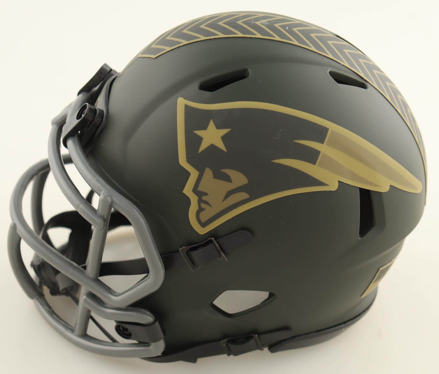 Riddell New England Patriots Salute to Service Alternate speed mini helmet. Hand-signed by Doug Flutie.