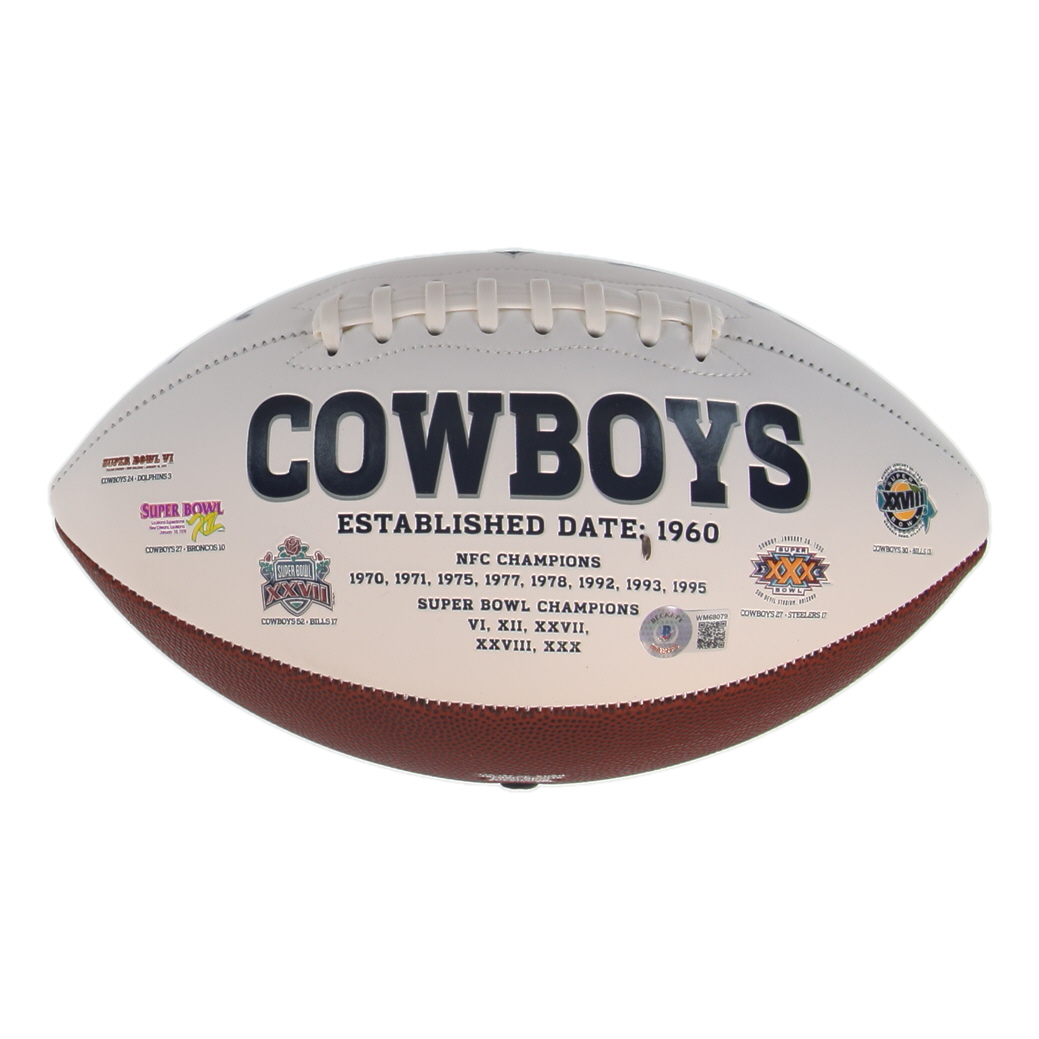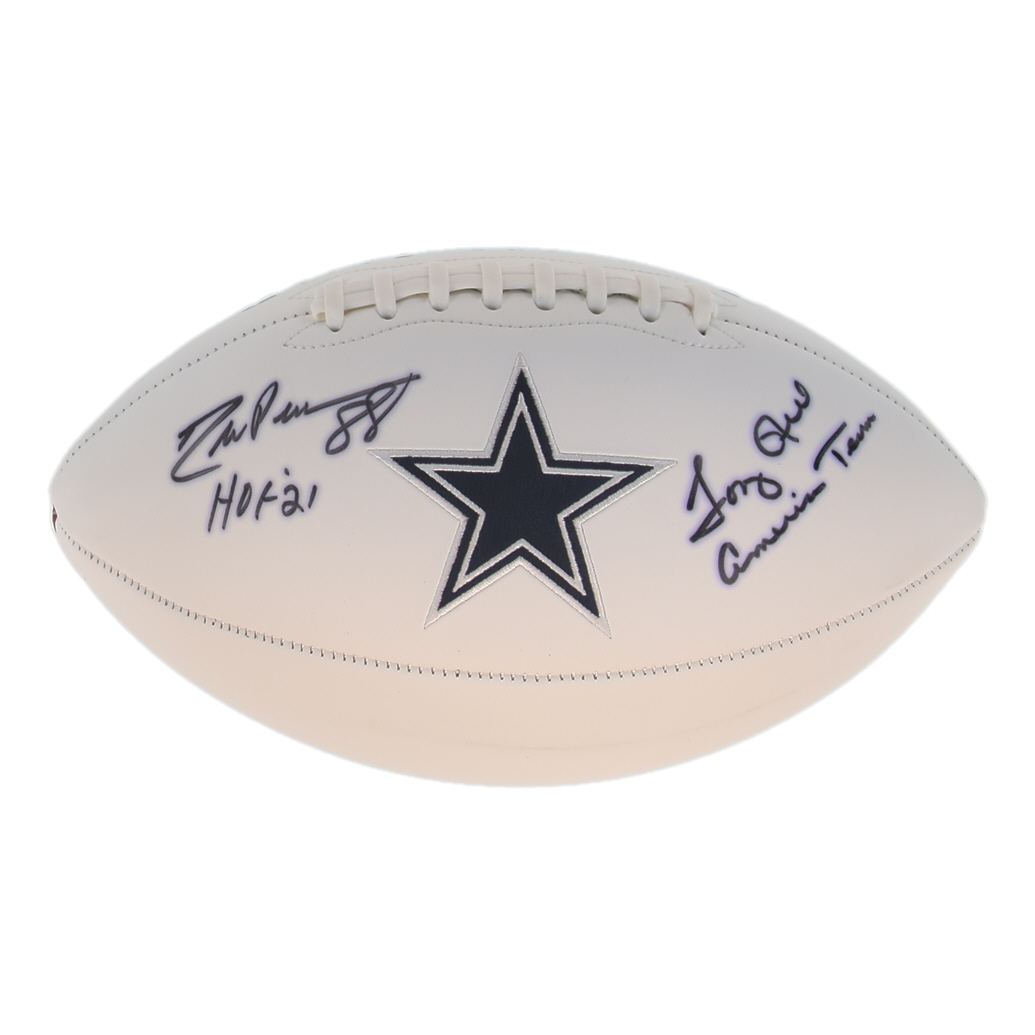 Dallas Cowboys logo football. Hand-signed and inscribed by Drew Pearson (HOF) and Tony Hill.