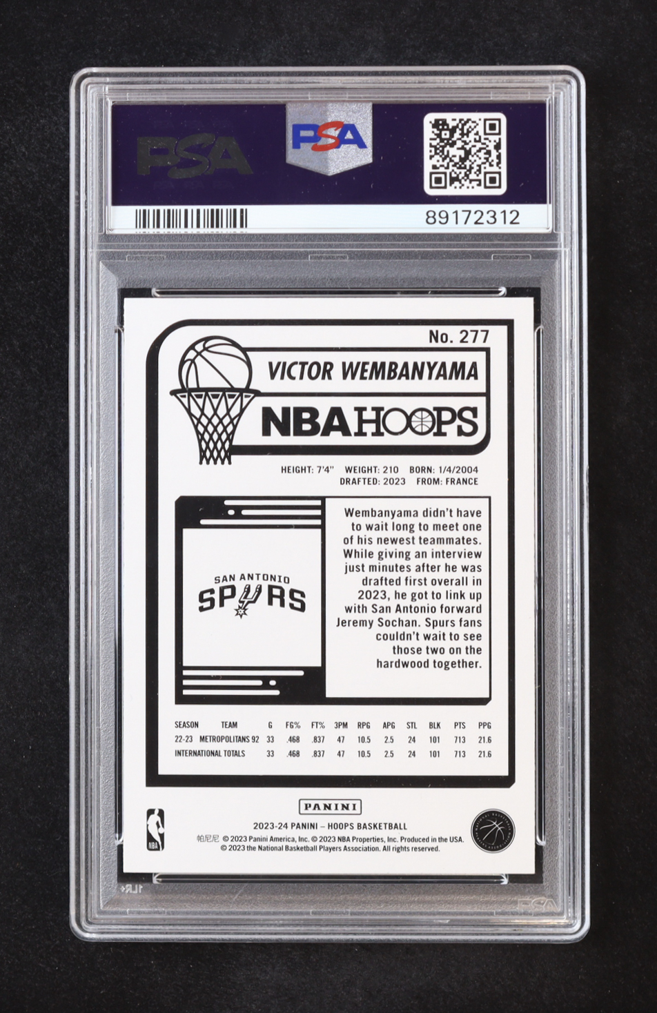 Victor Wembanyama 2023-24 Hoops Teal Explosion #277 RC (PSA 10)