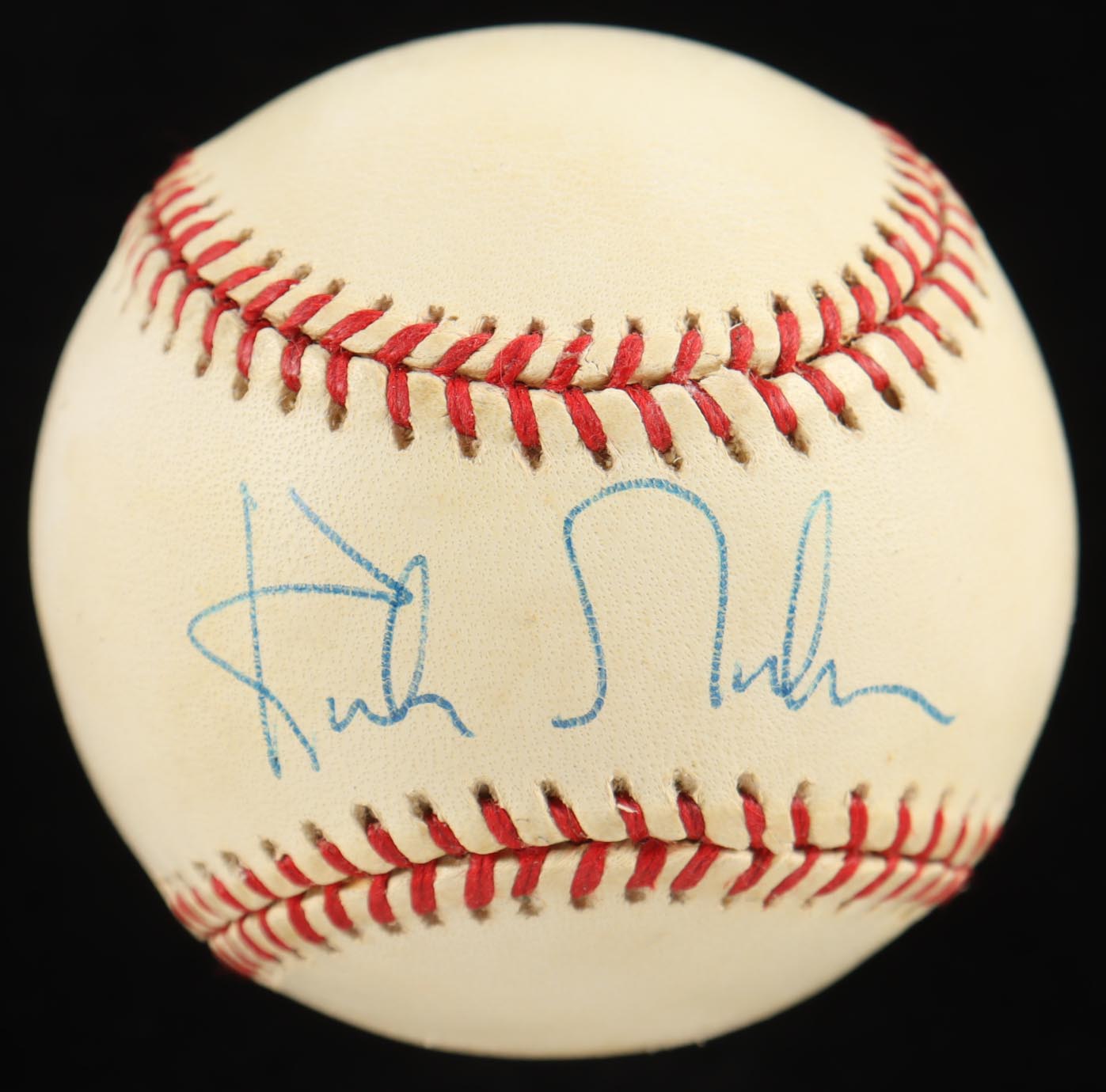 Rawlings Official National League Baseball. Hand-signed by Kirk Gibson (Detroit Tigers). Please note, the baseball is naturally toned and stained. Display case included as shown.