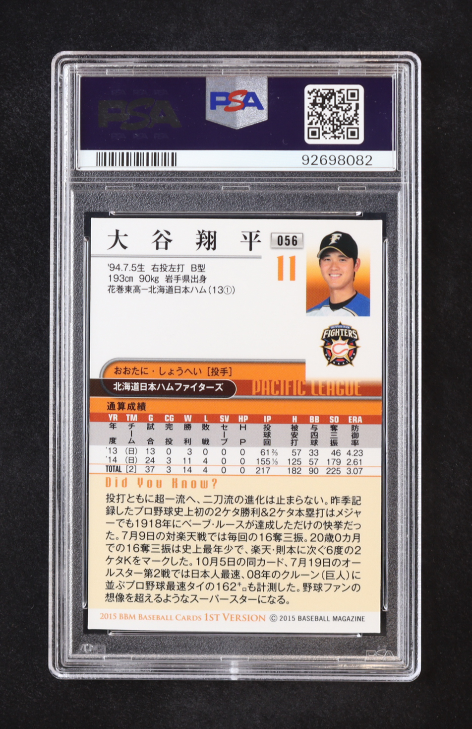Shohei Ohtani 2015 BBM 1st Edition #56 RC (PSA 10)