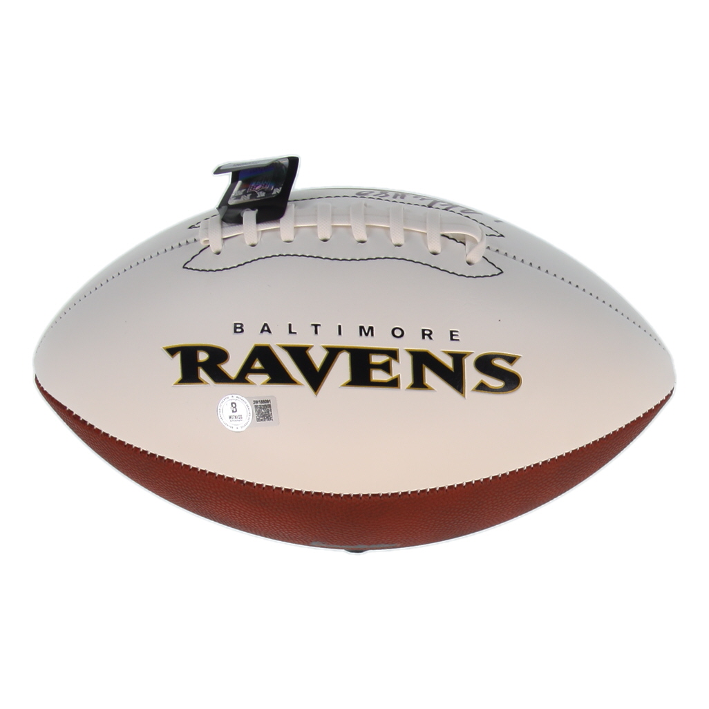 Baltimore Ravens logo football has been hand-signed by Isaiah Likely.