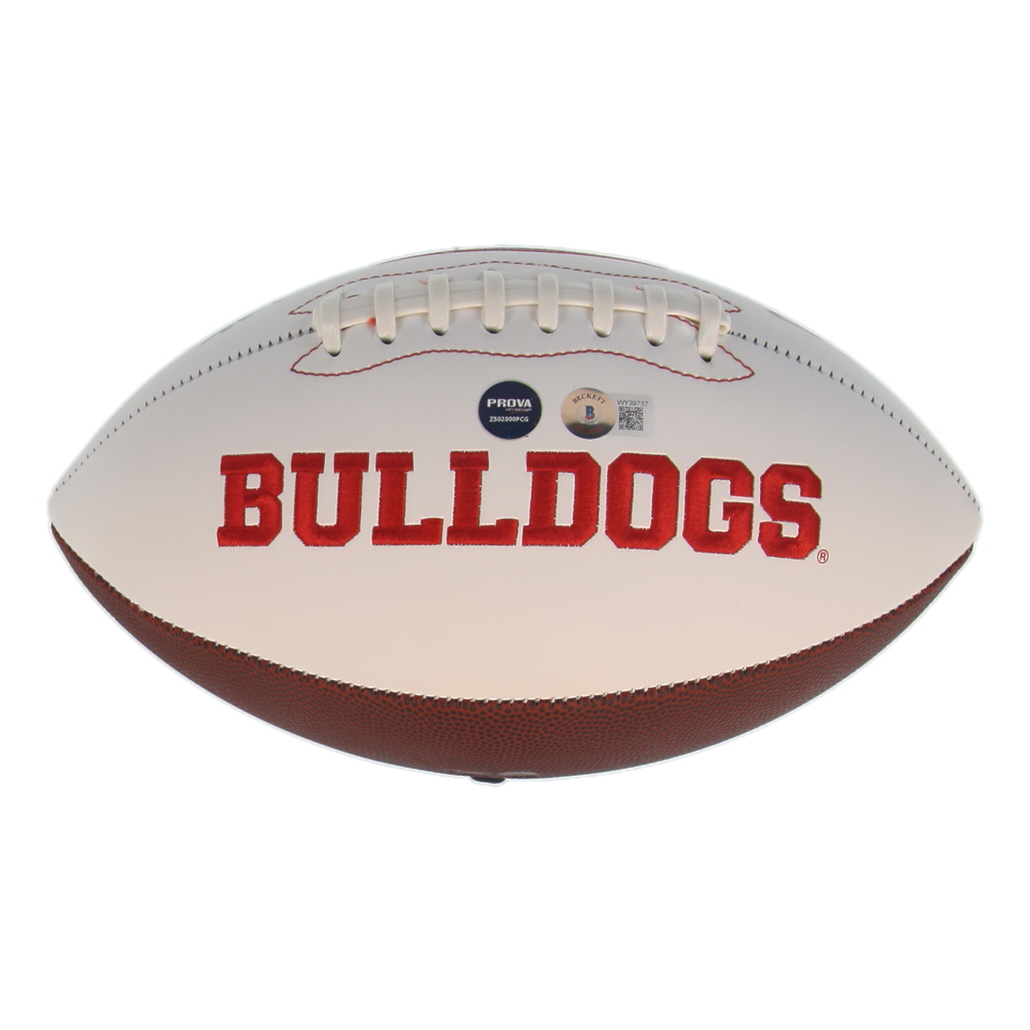 Rawlings Georgia Bulldogs logo football. Hand-signed and inscribed by James Cook.