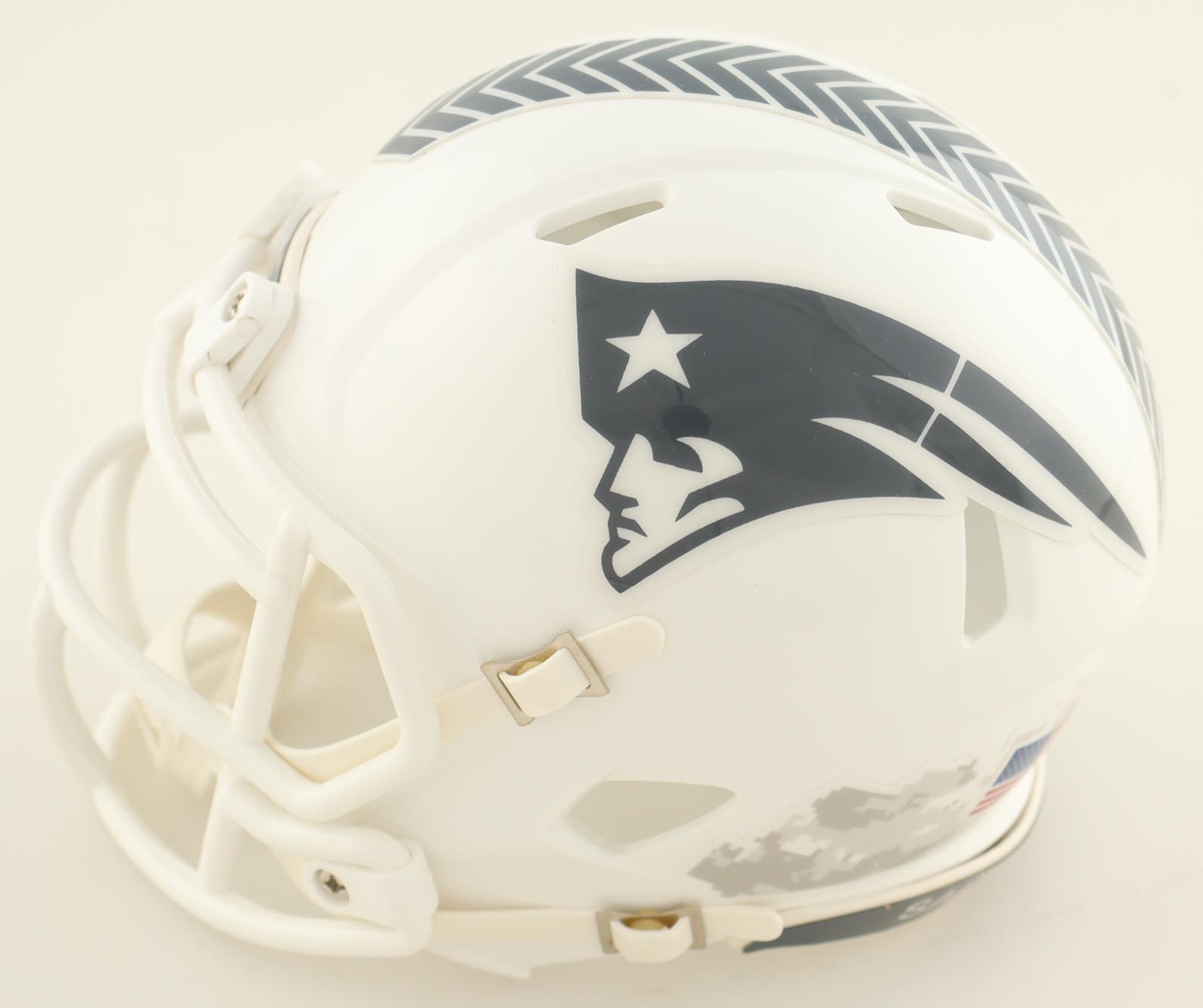 Riddell New England Patriots Salute To Service Alternate speed mini helmet. Hand-signed by Julian Edelman.
