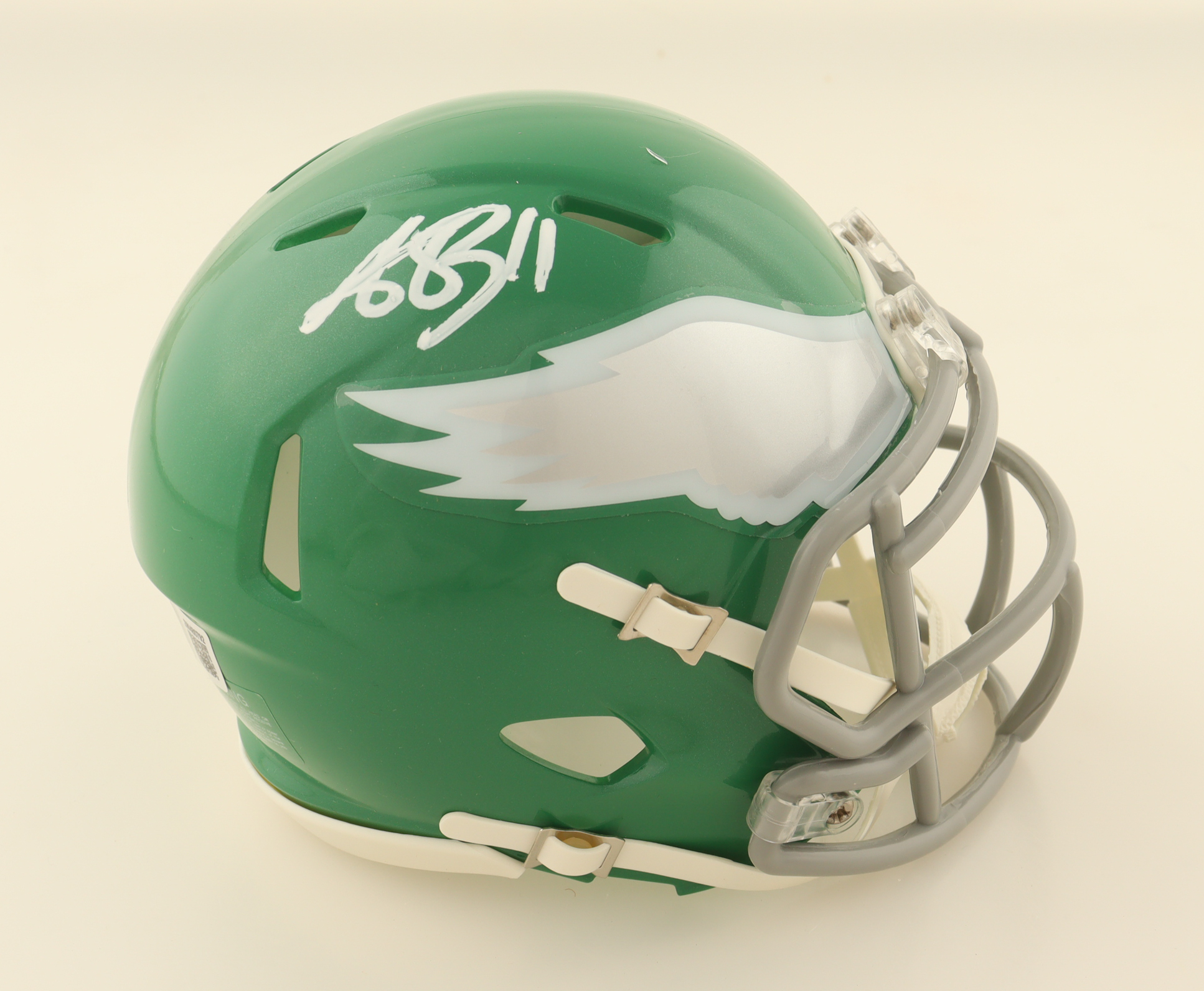 Riddell Philadelphia Eagles Throwback Alternate Speed mini helmet. Hand-signed by A.J. Brown. See photos for more details.