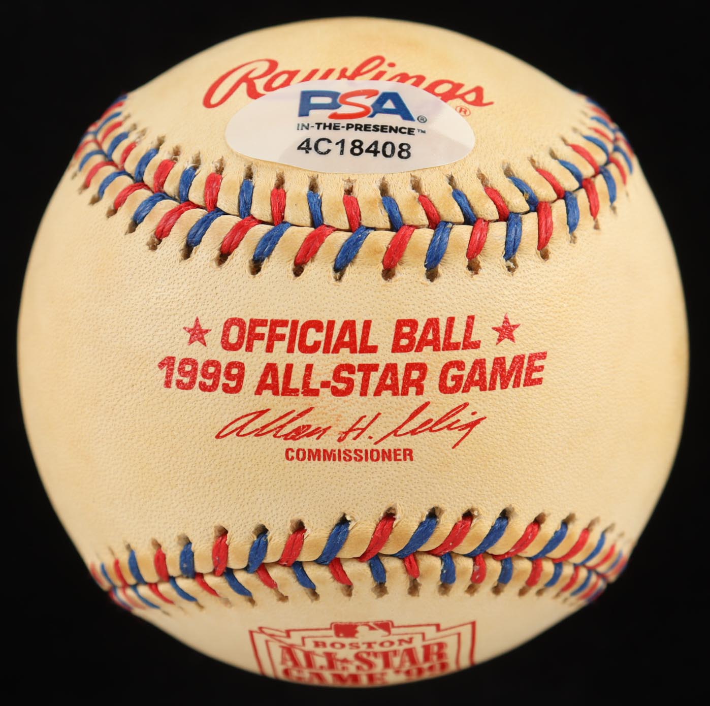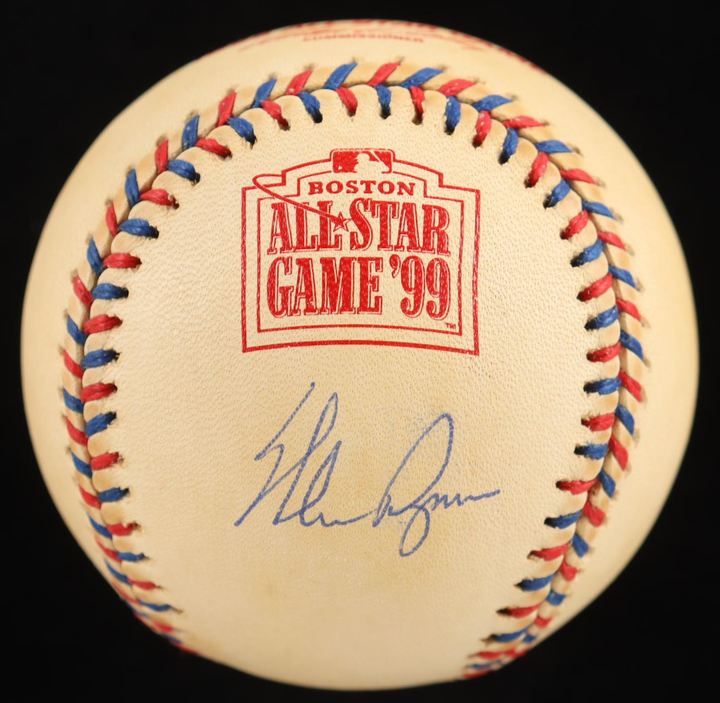 Rawlings Official 1999 All-Star Game logo baseball. Hand-signed by Nolan Ryan (Texas Rangers, HOF). Includes display case as shown.