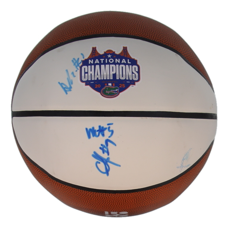 LOGO Brands 2025 Florida Gators National Champions Basketball. Hand-signed by Will Richard, Alex Condon, and Ruben Chinleyu. Please note, there are stains and dents throughout the basketball.