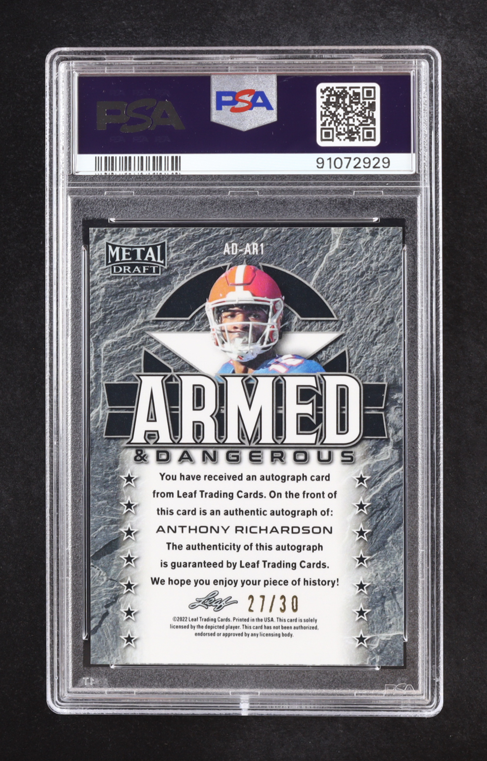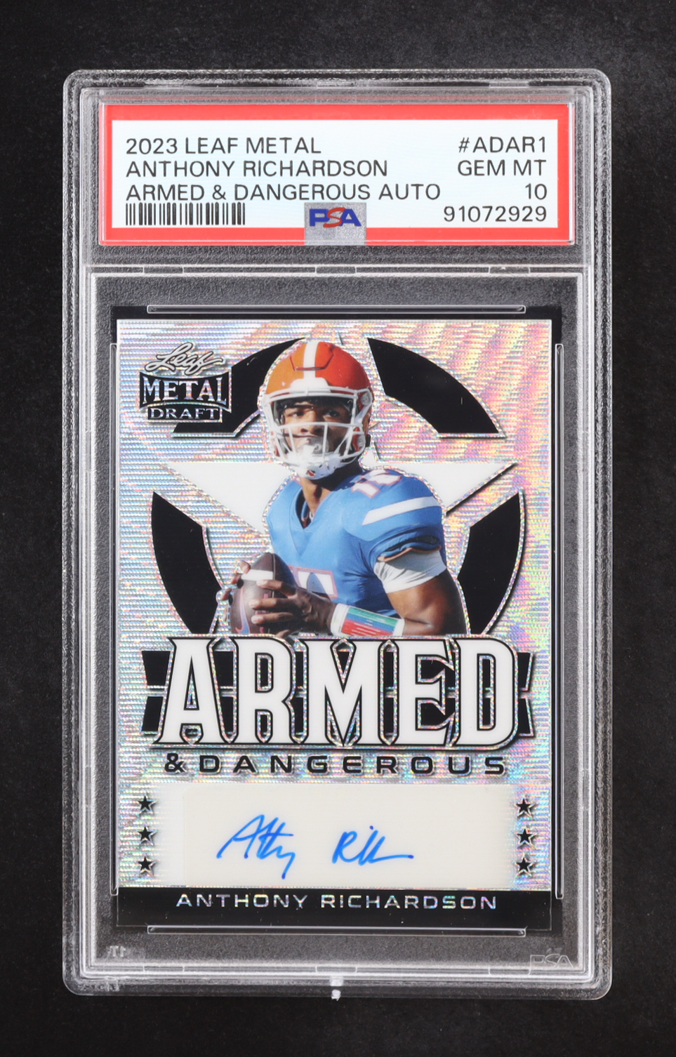 Anthony Richardson 2023 Leaf Metal Draft Armed & Dangerous Auto #AD-AR1 RC #27/30 (PSA 10)