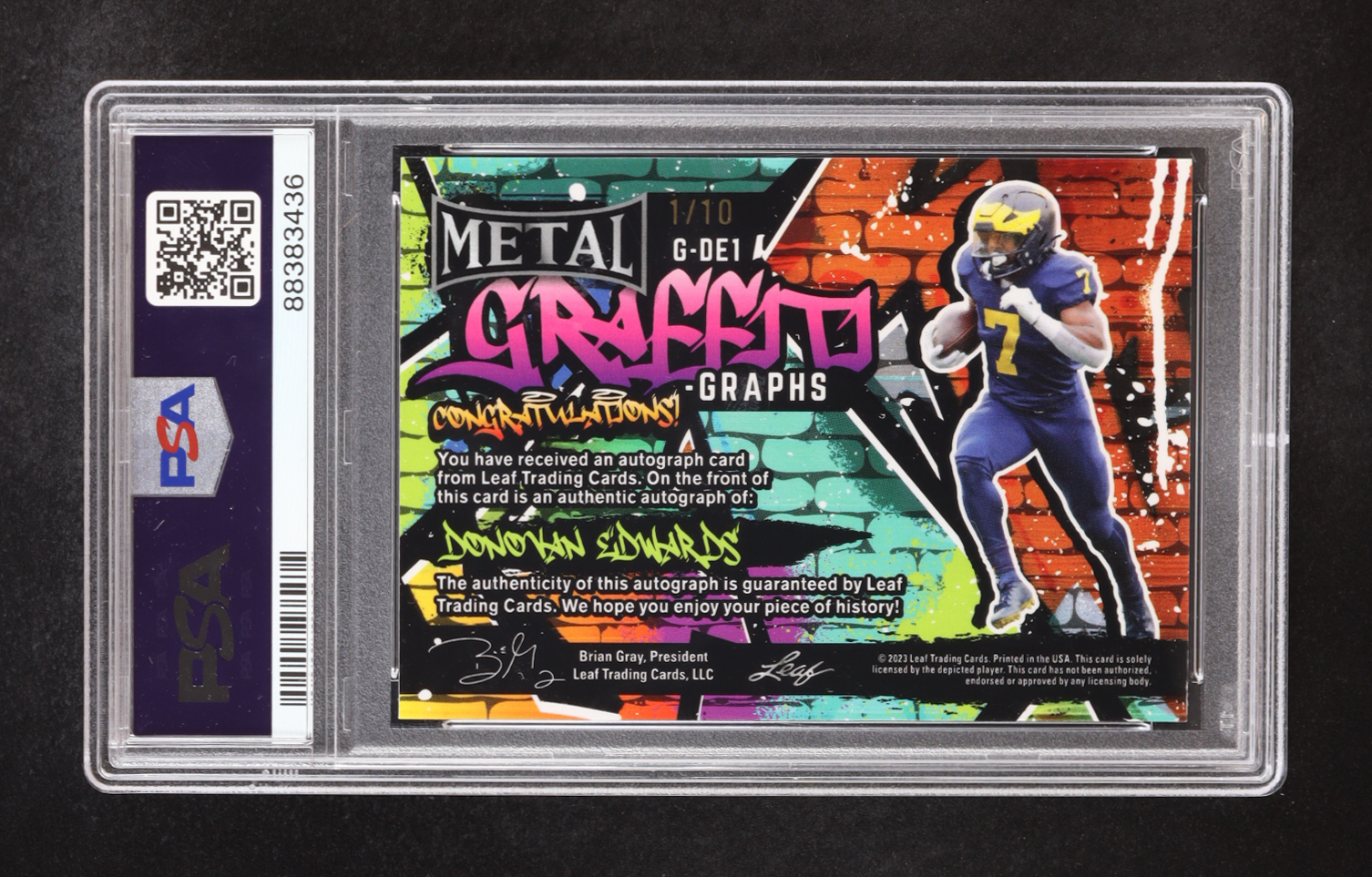 Donovan Edwards 2023 Leaf Metal Graffiti-Graphs Autograph #GDE1 RC #1/10 (PSA 10)