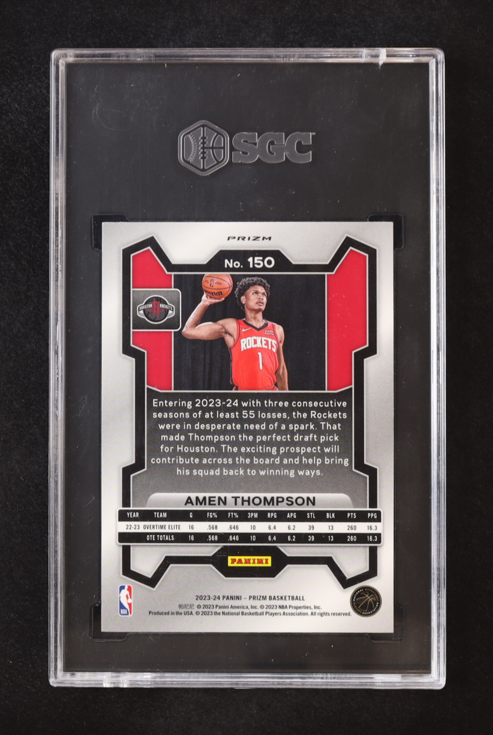 Amen Thompson 2023-24 Panini Prizm Prizms Orange Ice #150 RC (SGC 10)