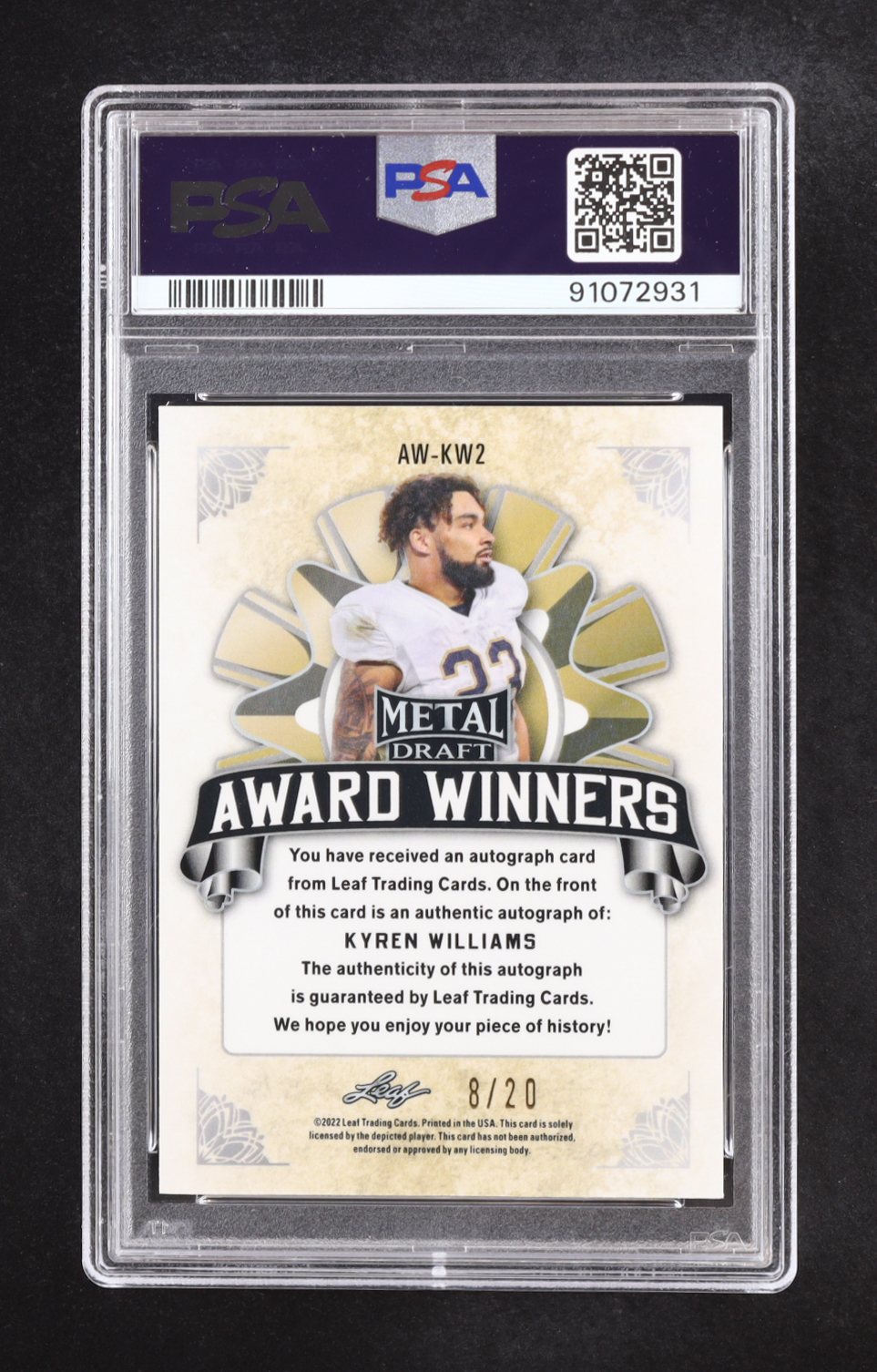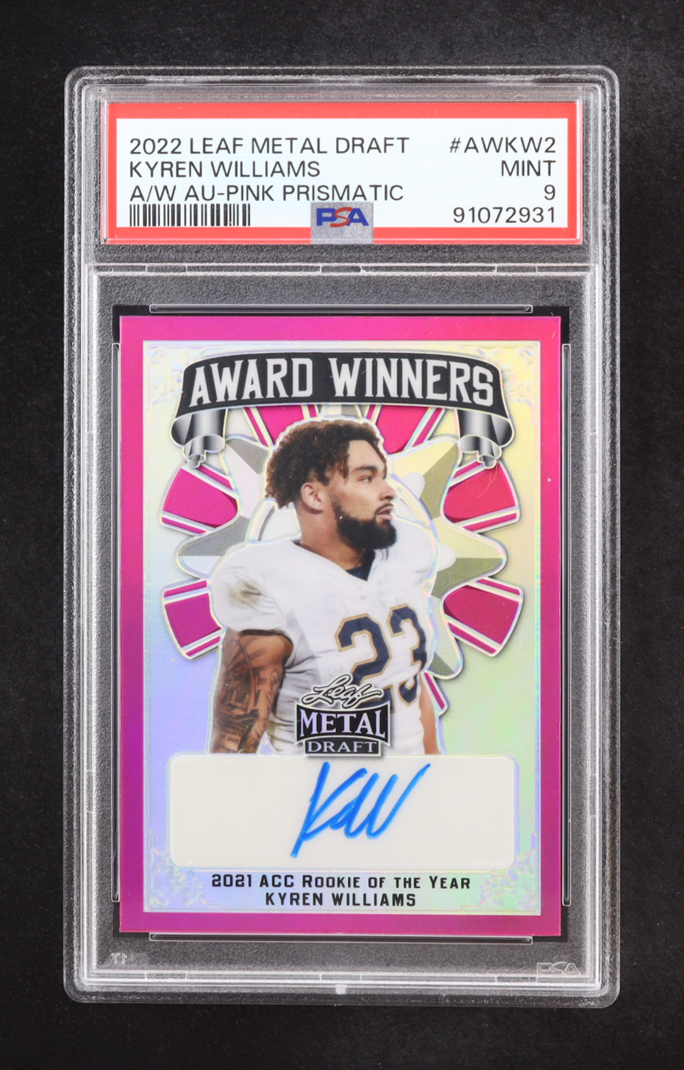 Kyren Williams 2022 Leaf Metal Draft Award Winner Auto Pink Prismatic #AW-KW2 RC #8/20 (PSA 9)