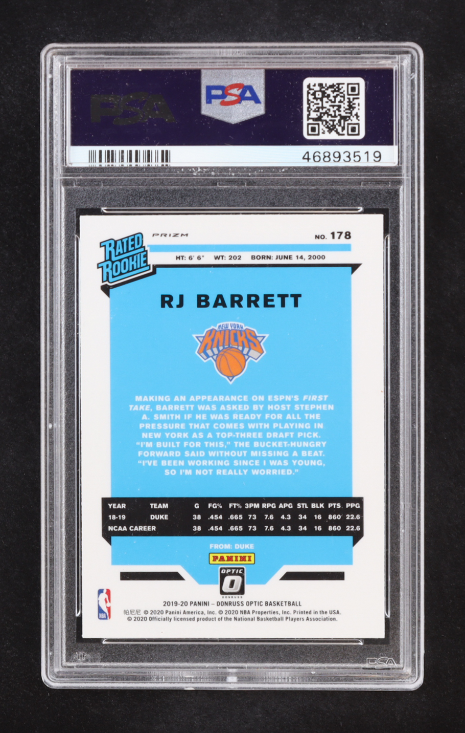 RJ Barrett 2019-20 Donruss Optic Fanatics Box Set #178 RR RC (PSA 9)