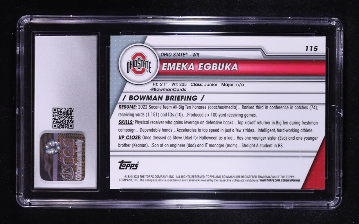 Emeka Egbuka 2023 Bowman Chrome University #115 RC (CGC 9)