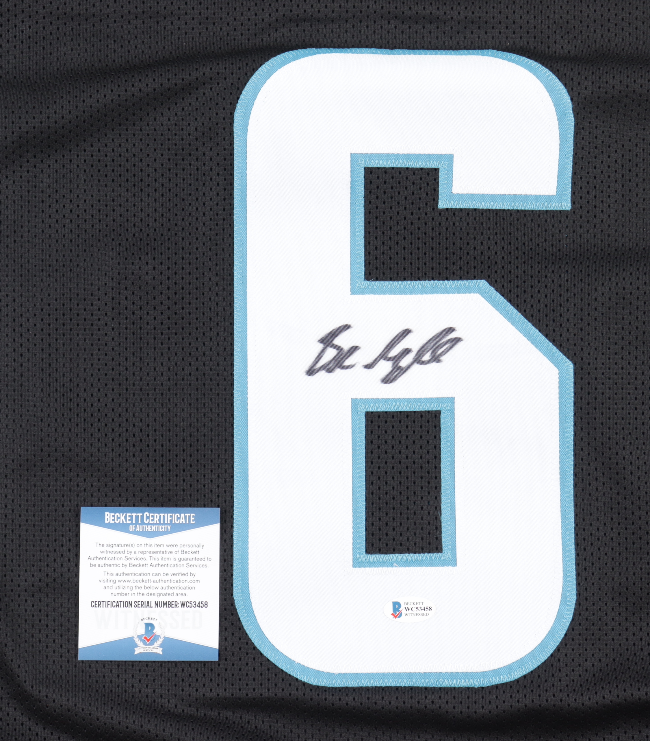 The autograph includes an official Beckett Authentication Services serially-numbered hologram and matching COA for authenticity purposes. The signing of this item was witnessed by Beckett.