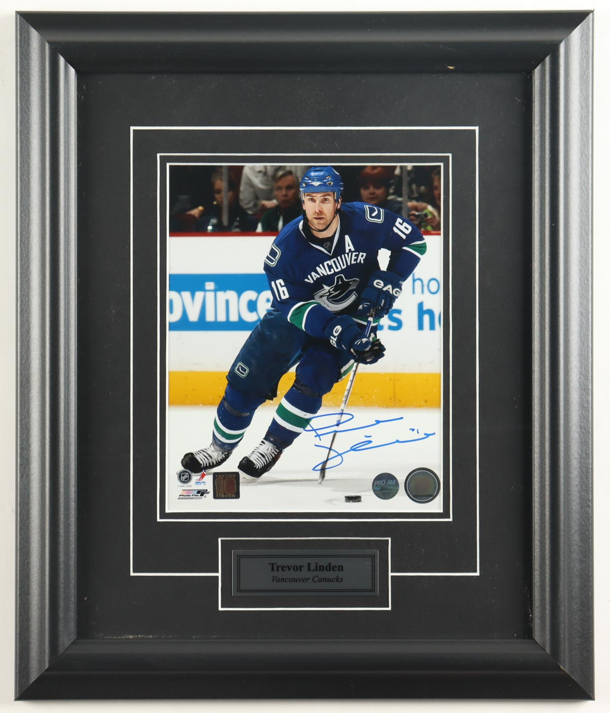Custom frame measures 16" x 19" in size. 8" x 10" photograph is hand-signed by Trevor Linden (Vancouver Canucks).