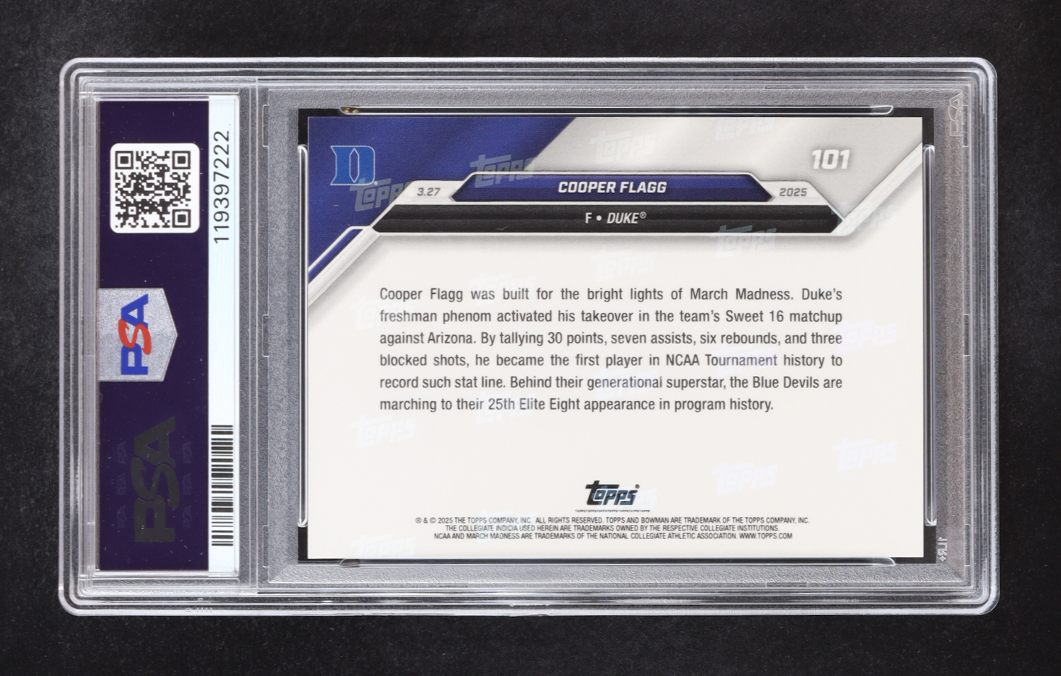 Cooper Flagg 2024-25 Bowman University Now #101 RC (PSA 10)