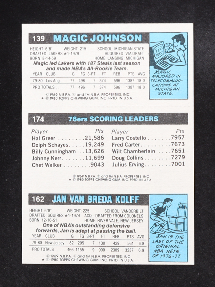 Jan Van Breda Kolff #162 / Julius Erving #174 TL / Magic Johnson #139 1980-81 Topps #146