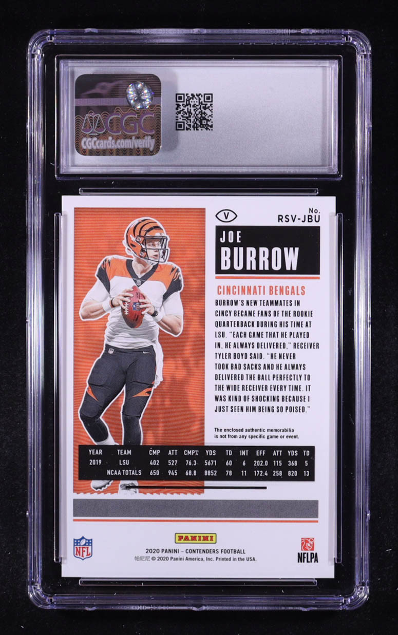 Joe Burrow 2020 Panini Contenders Rookie Ticket Swatches Variation #1 RC (CGC 10)