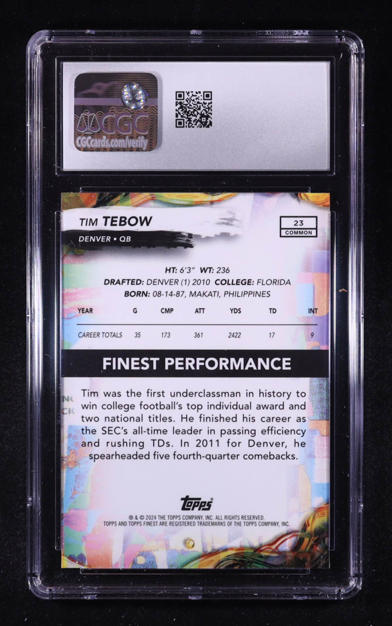 Tim Tebow 2024 Finest Blue Refractors #23 #060/200 (CGC 9.5)