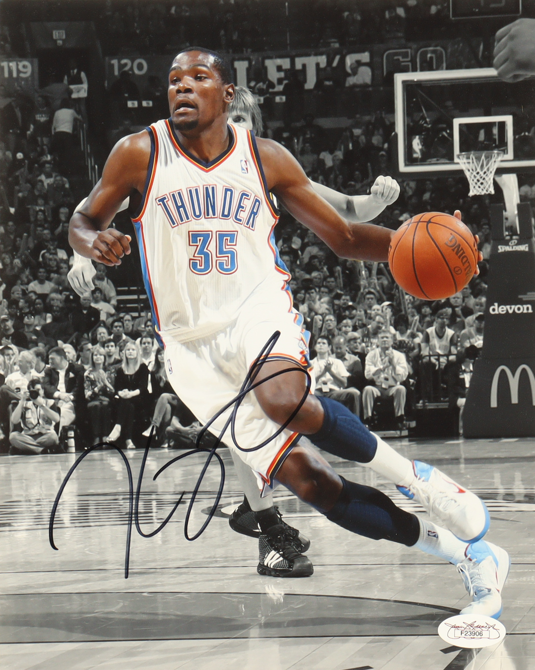 Photo measures 8" x 10" in size and has been hand-signed by Kevin Durant (Oklahoma City Thunder).