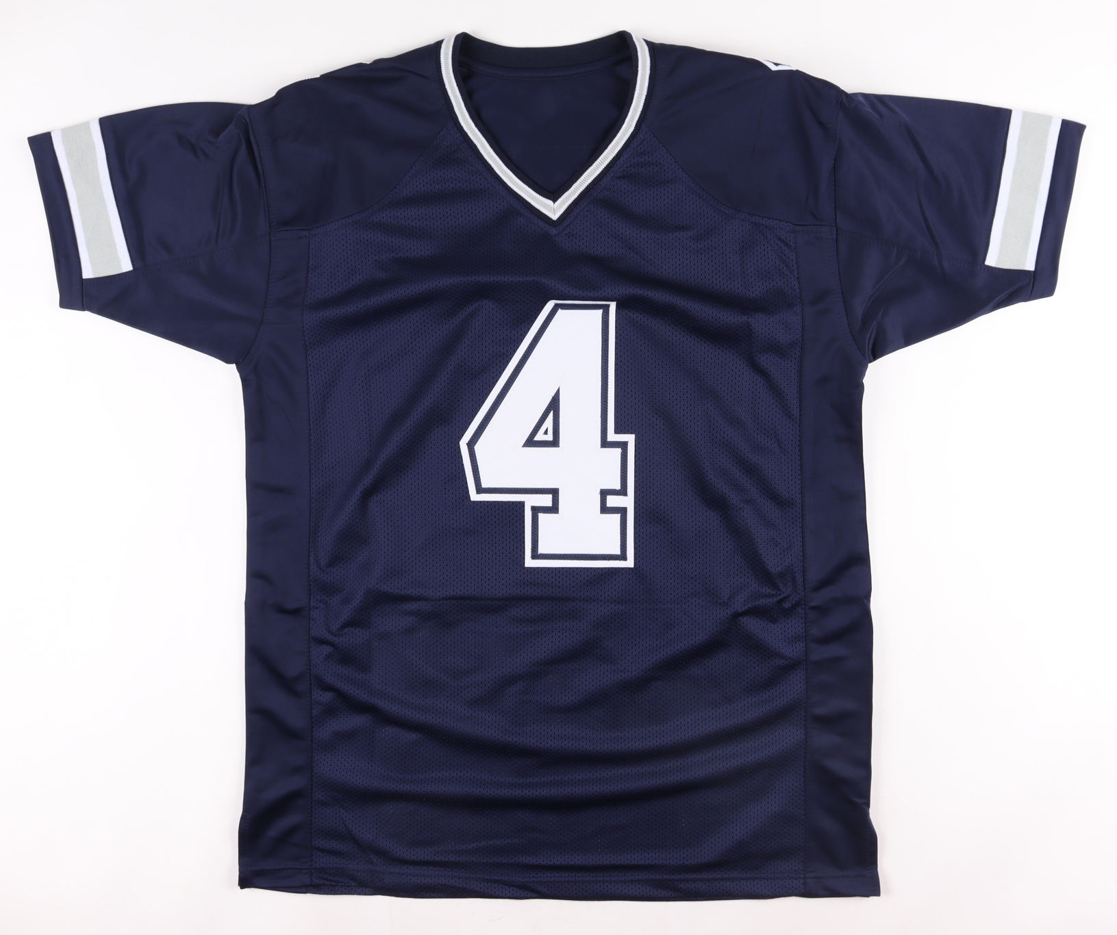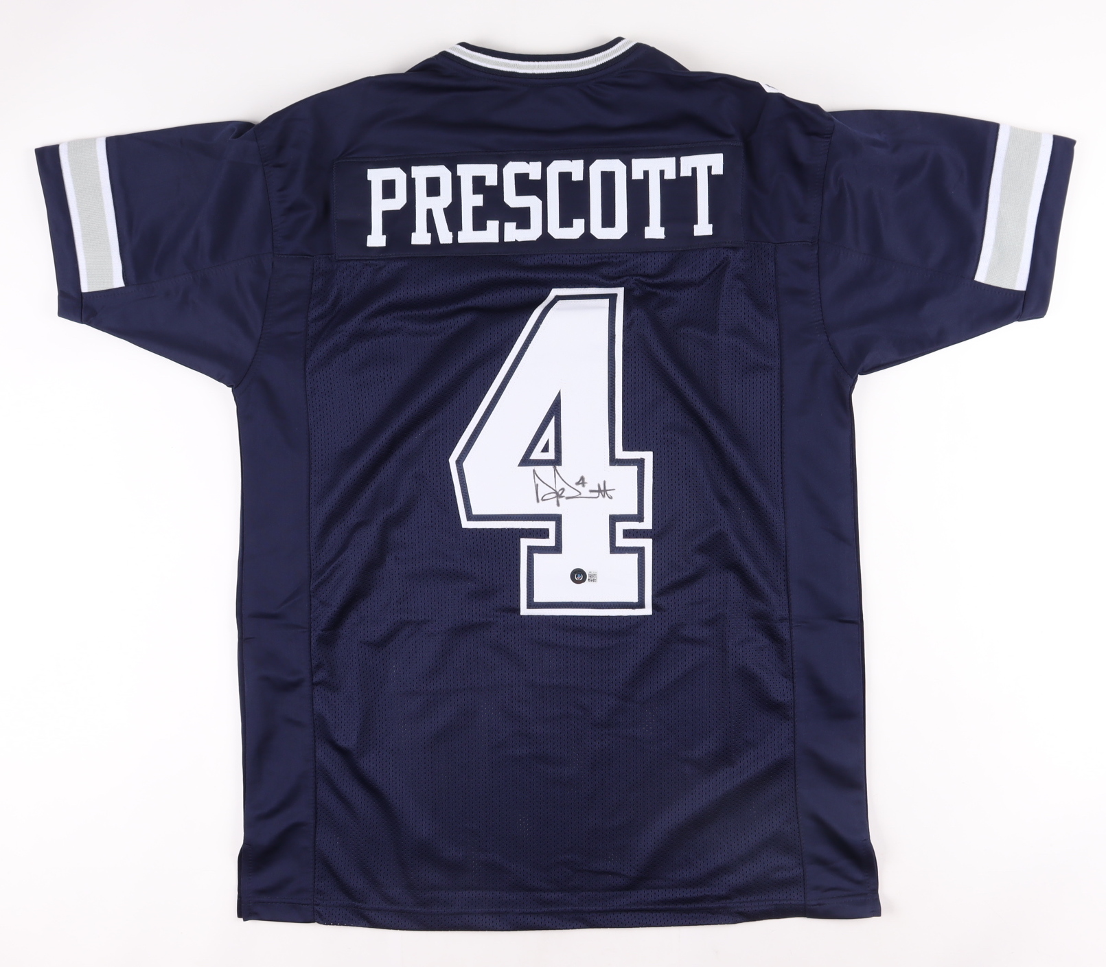 Custom jersey. Everything sewn on, size XL. Hand-signed by Dak Prescott.