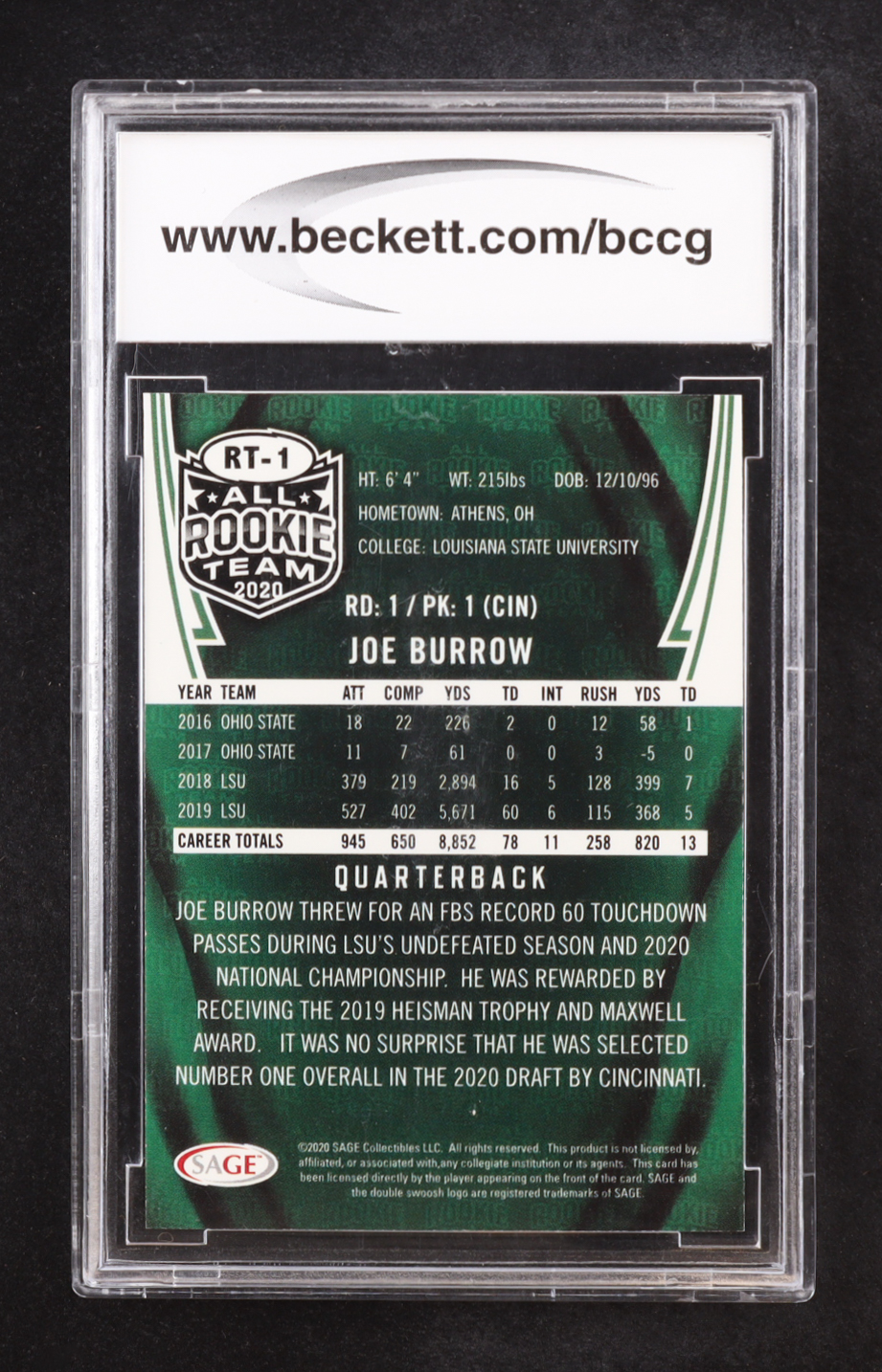 Joe Burrow 2020 SAGE All Rookie Team #RT1 RC (BCCG 10)