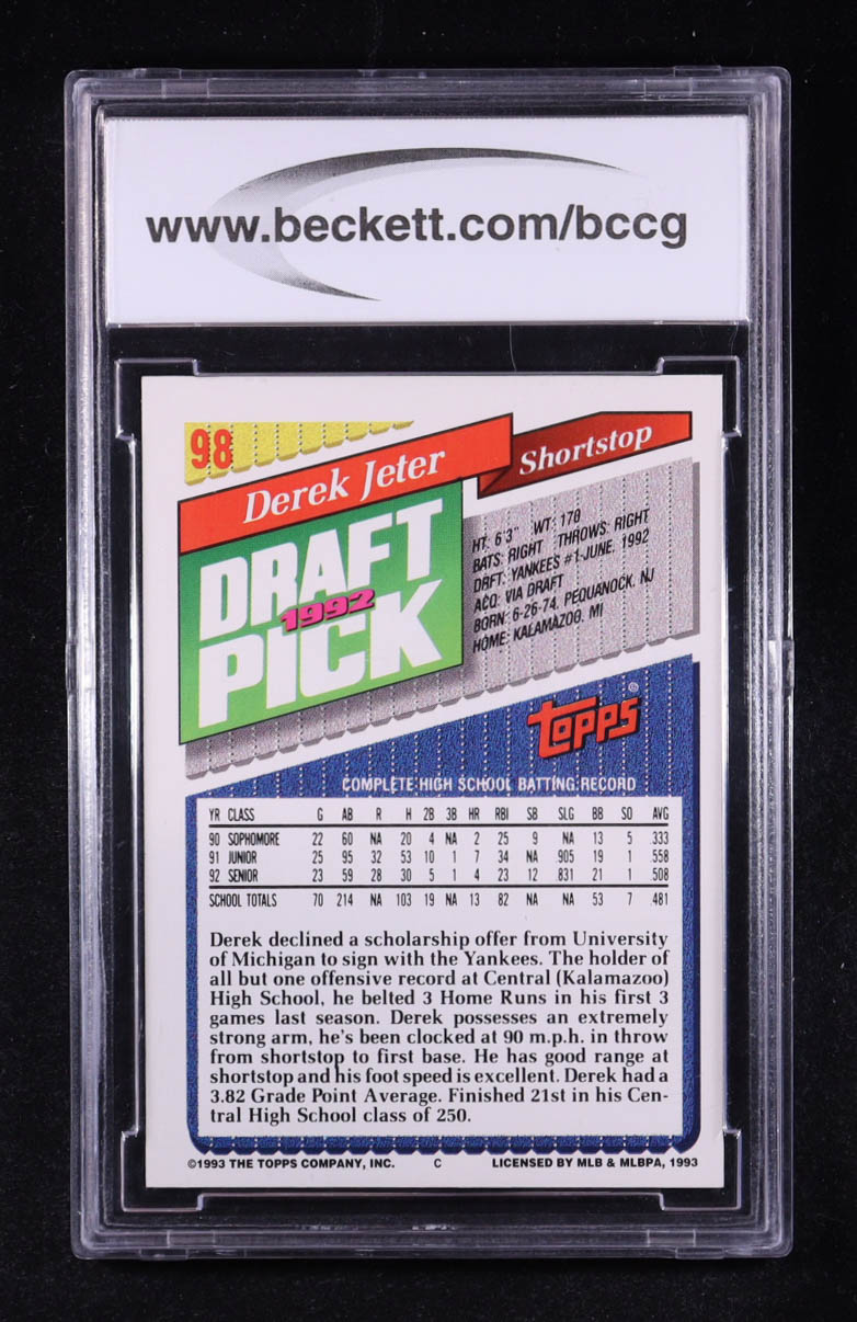 Derek Jeter 1993 Topps #98 RC (BCCG 9)