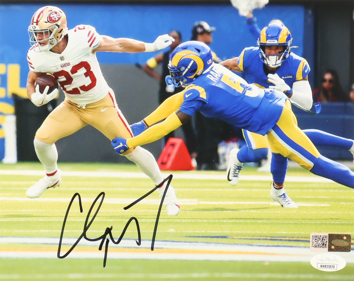 Photo measures 8" x 10" in size and has been hand-signed by Christian McCaffrey (San Francisco 49ers).